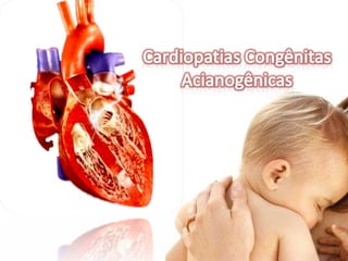As cardiopatias congênitas ocorrem devido a defeitos na formação do sistema cardiovascular durante o desenvolvimento embrionário, podendo afetar a estrutura do coração e dos grandes vasos. Os principais tipos descritos são comunicações interatrial e interventricular, persistência do canal arterial, tetralogia de Fallot e transposição dos grandes vasos. O diagnóstico e tratamento dependem da gravidade da alteração anatômica.