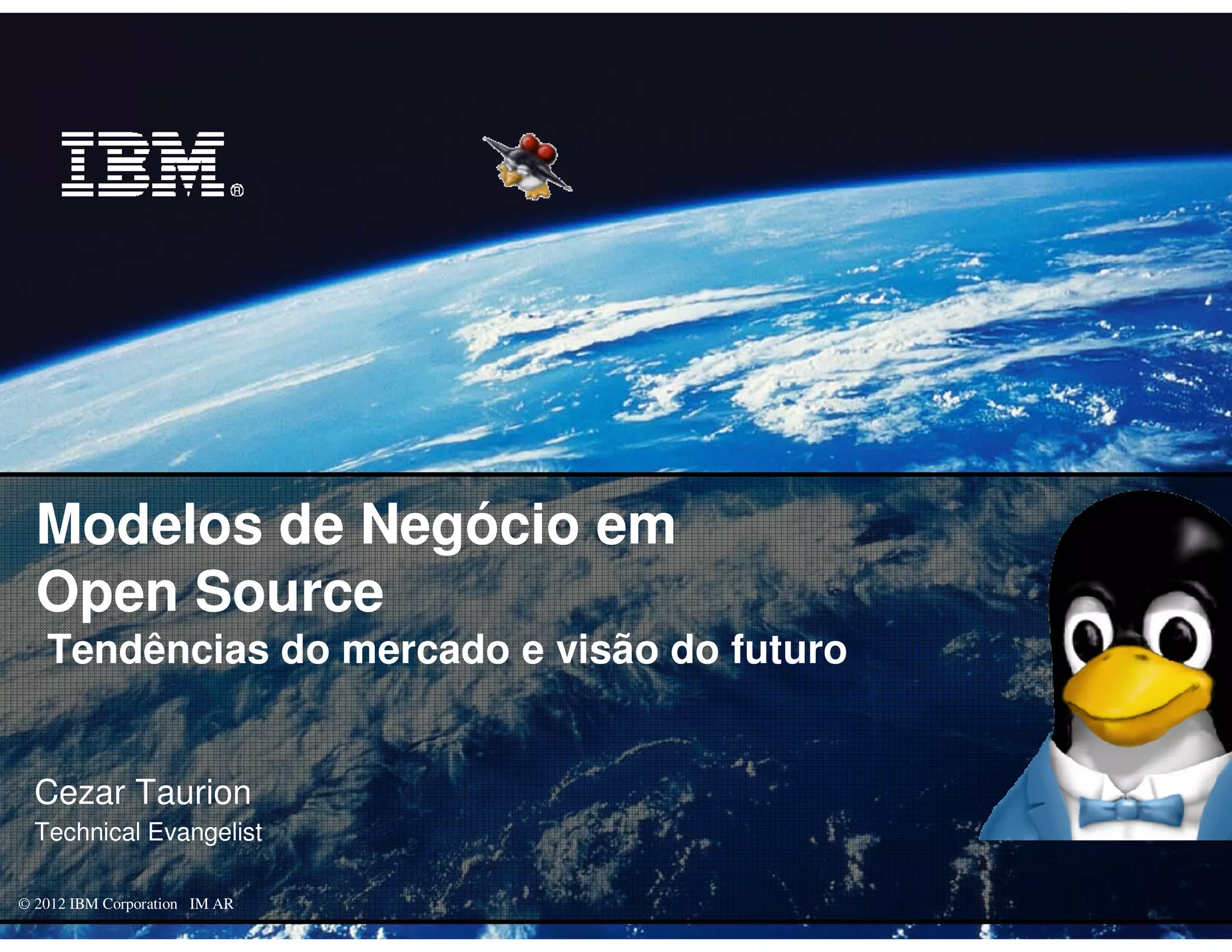 O documento analisa modelos de negócios de software open source, destacando seu impacto na indústria e tendências futuras. Discute a obsolescência, a disponibilidade de produtos e as reações do mercado frente ao software aberto, além de abordar contribuições da IBM nesse contexto. Propõe um caminho para adoção de open source, enfatizando colaboração e inovação na tecnologia.
