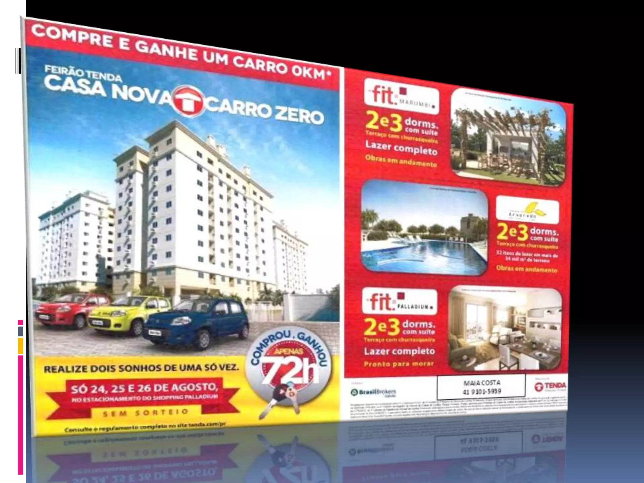 FEIRÃO TENDA CASA NOVA CARRO ZERO REALIZE DOIS SONHOS DE UMA SÓ VEZ, COMPRE E GANHE UM CARRO 0 KM. SOMENTE NESTES DIAS 24, 25 E 26 DE AGOSTO NO ESTACIONAMENTO DO SHOPPING PALLADIUM. MAIS INFORMAÇÕES COM MAIA COSTA 41 9101-5939