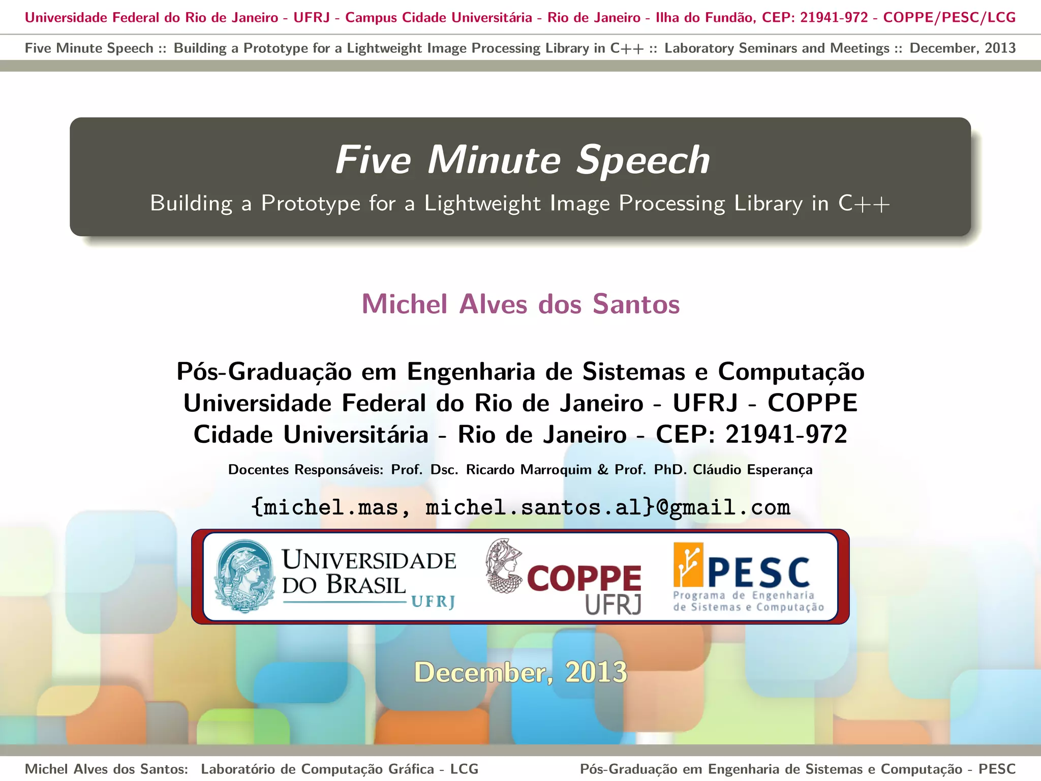 Five Minute Speech :: Building a Prototype for a Lightweight Image Processing Library in C++ :: Laboratory Seminars and Meetings :: December, 2013