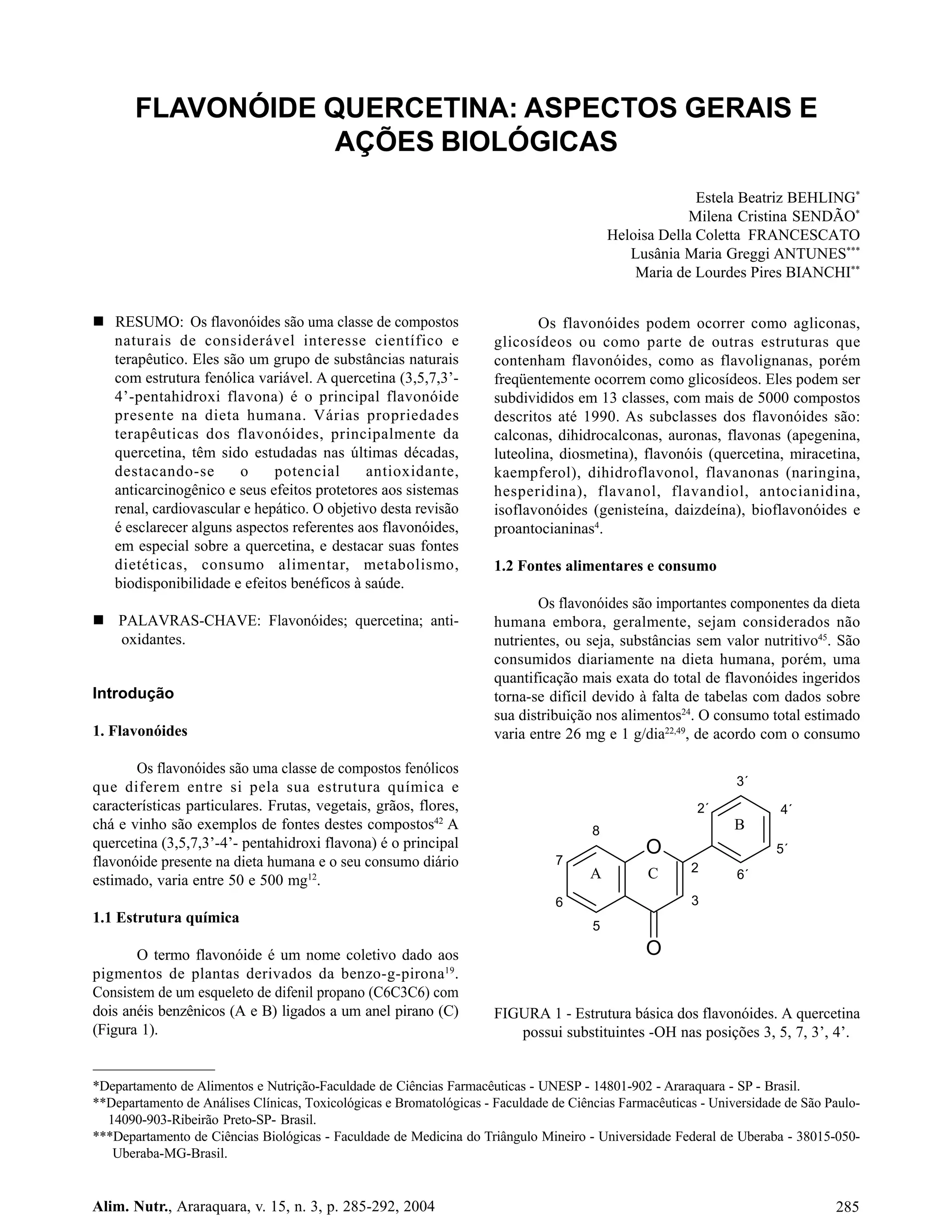 1) O documento discute a quercetina, um flavonóide encontrado em alimentos, incluindo suas propriedades, fontes dietéticas e efeitos benéficos à saúde.