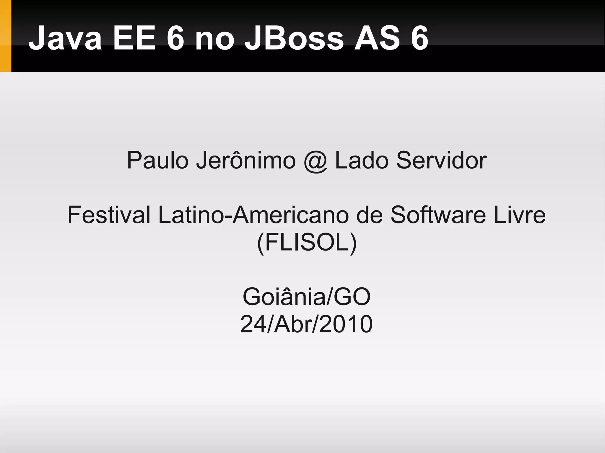 O documento resume uma apresentação sobre Java EE 6 no JBoss AS 6. Ele discute brevemente as principais características e APIs do Java EE 6 como CDI, EJB 3.1 e JPA 2.0, e como elas estão sendo implementadas no JBoss AS 6. O documento também mostra como baixar os fontes, compilar e instalar o JBoss AS 6 e executar um projeto Weld nele.