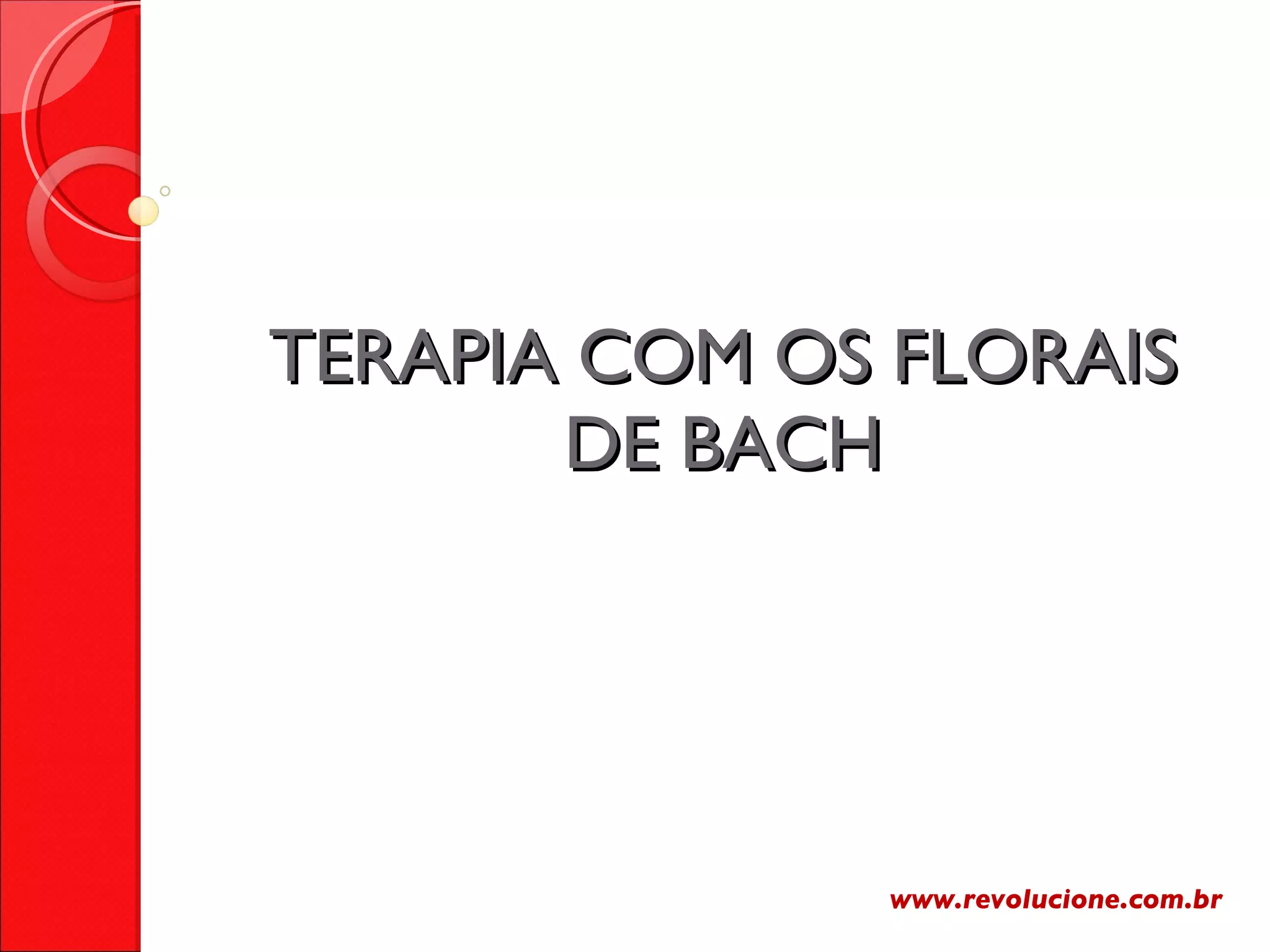O documento descreve a história e os princípios da terapia floral de Bach, desenvolvida pelo médico inglês Edward Bach na década de 1930. Ele percebeu que as emoções e personalidades estavam ligadas às doenças e criou remédios naturais usando essências de 38 flores para equilibrar os estados mentais e emocionais. Os florais de Bach são reconhecidos pela OMS e ajudam as pessoas harmonizando suas estruturas emocionais, não curando doenças diretamente.