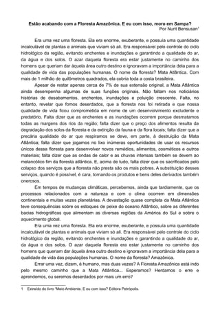 A destruição quase completa da Mata Atlântica teve consequências continentais e globais, incluindo sobre os estoques de peixe no Atlântico, bacias hidrográficas na América do Sul, e o aquecimento global. A Floresta Amazônica corre o risco de sofrer o mesmo destino devastador, o que traria graves impactos para o clima e populações humanas.