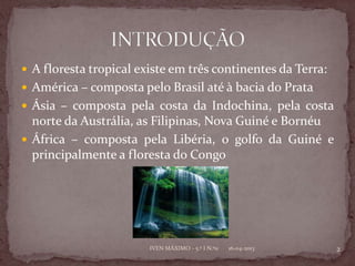 A Amazônia é a maior floresta tropical do mundo, cobrindo cerca de 5,5 milhões de km2 na bacia amazônica da América do Sul. Ela abriga a maior biodiversidade do planeta com milhões de espécies de plantas e animais e é essencial para o equilíbrio do clima global, porém vem sofrendo com o desmatamento causado principalmente pela agricultura e pecuária.