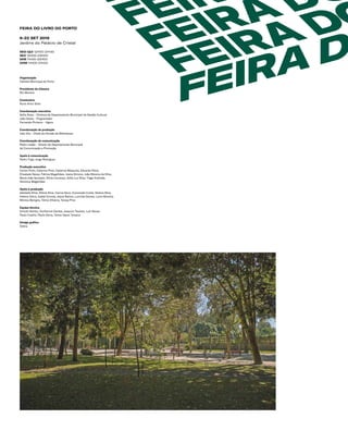 Este documento apresenta a programação da Feira do Livro do Porto de 2019. A feira irá homenagear o pensador Eduardo Lourenço e apresentará uma vasta programação de debates, apresentações de livros, cinema, concertos e outras atividades relacionadas com literatura, cultura e assuntos atuais ao longo de 17 dias nos Jardins do Palácio de Cristal.