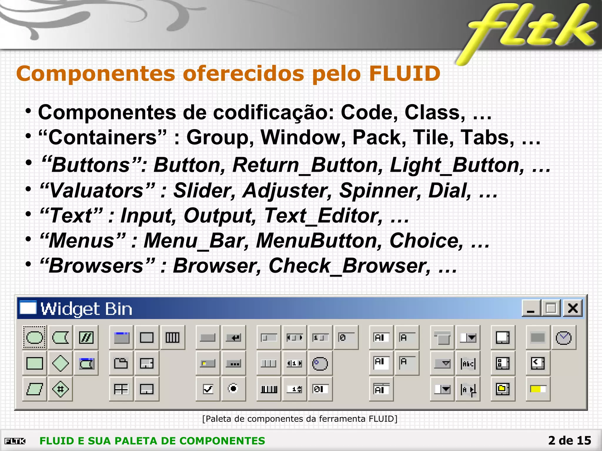O documento apresenta uma introdução ao Fast Light Toolkit (FLTK) com ênfase em sua paleta de componentes e exemplos de codificação. Ele cobre o uso de callbacks para responder a eventos e a implementação de esquemas de interface personalizados. O texto também inclui códigos de exemplo e uma reflexão motivacional ao final.