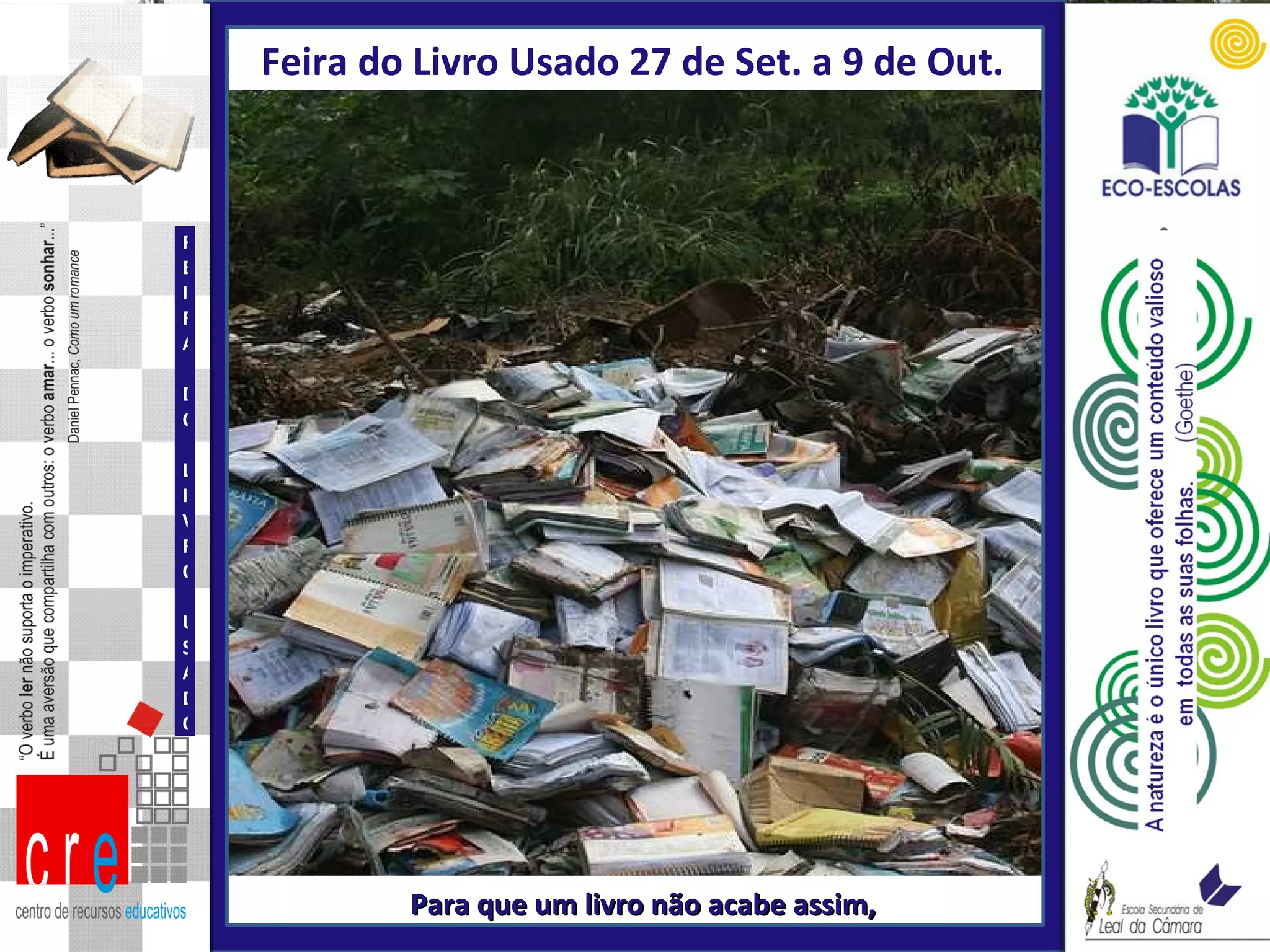 Feira do LivroUsado 27 de Set. a 9 de Out. Para que um livro não acabe assim, FEIRA DO LIVRO USADO