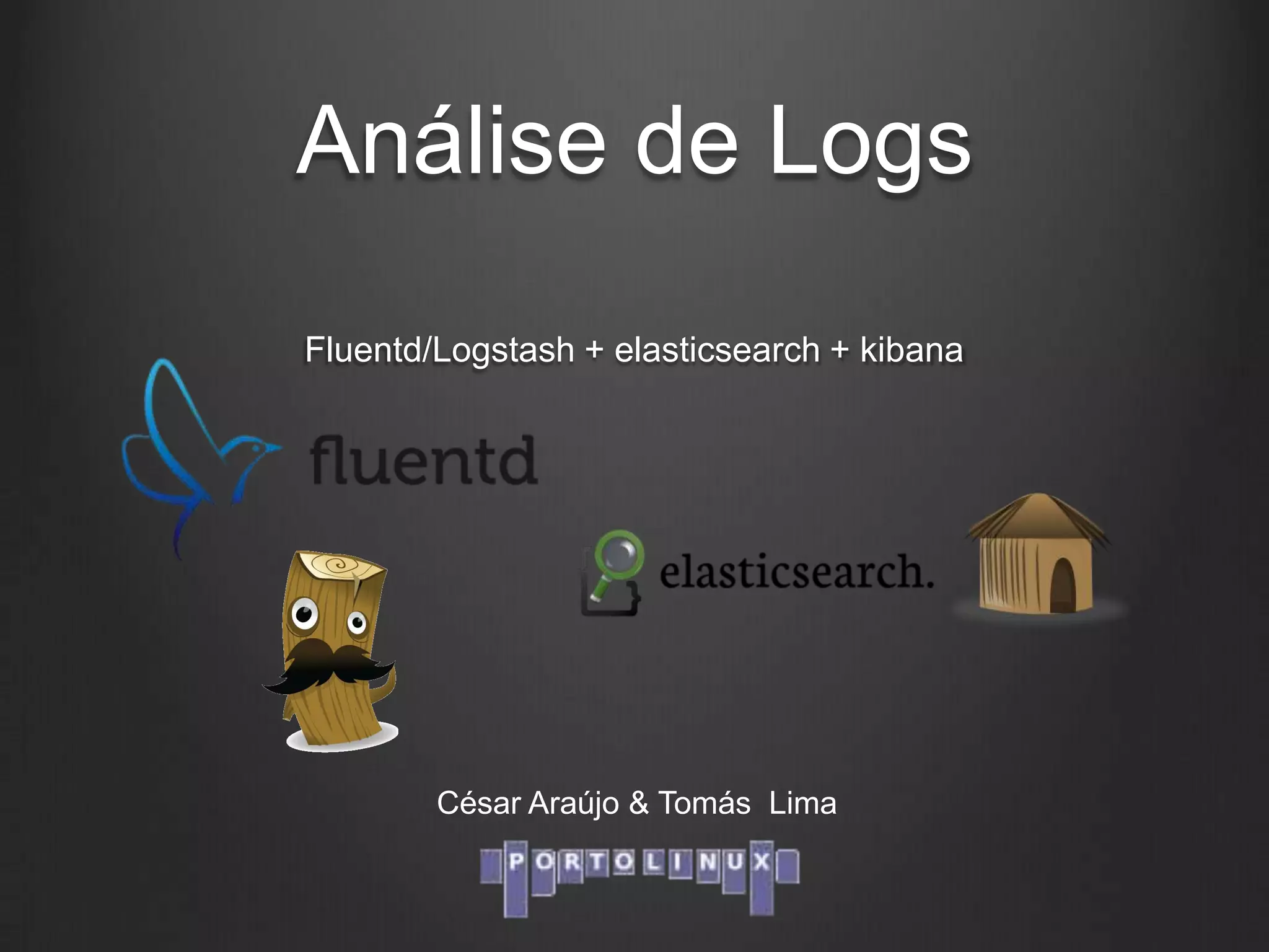 O documento descreve como Fluentd, Logstash, Elasticsearch e Kibana podem ser usados juntos para análise de logs em tempo real. Fluentd coleta logs de aplicações e os envia para Logstash ou diretamente para Elasticsearch. Logstash filtra e transforma os dados antes de enviá-los para Elasticsearch. Elasticsearch armazena os dados de forma a permitir pesquisas rápidas. Kibana fornece uma interface para visualização e análise dos dados armazenados no Elasticsearch.
