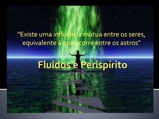  Substância queenvolve o espírito  Corpo fluídico dos espíritos  Constituído pelos fluidos de cada planeta  Condensação do Fluido Cósmico em torno do Espírito (corpo fluídico espiritual)  Laço entre Espírito e Corpo Físico  Varia conforme a evolução espiritual  Base de todos os fenômenos mediúnicos Age sobre o organismo por estar em contato molecular