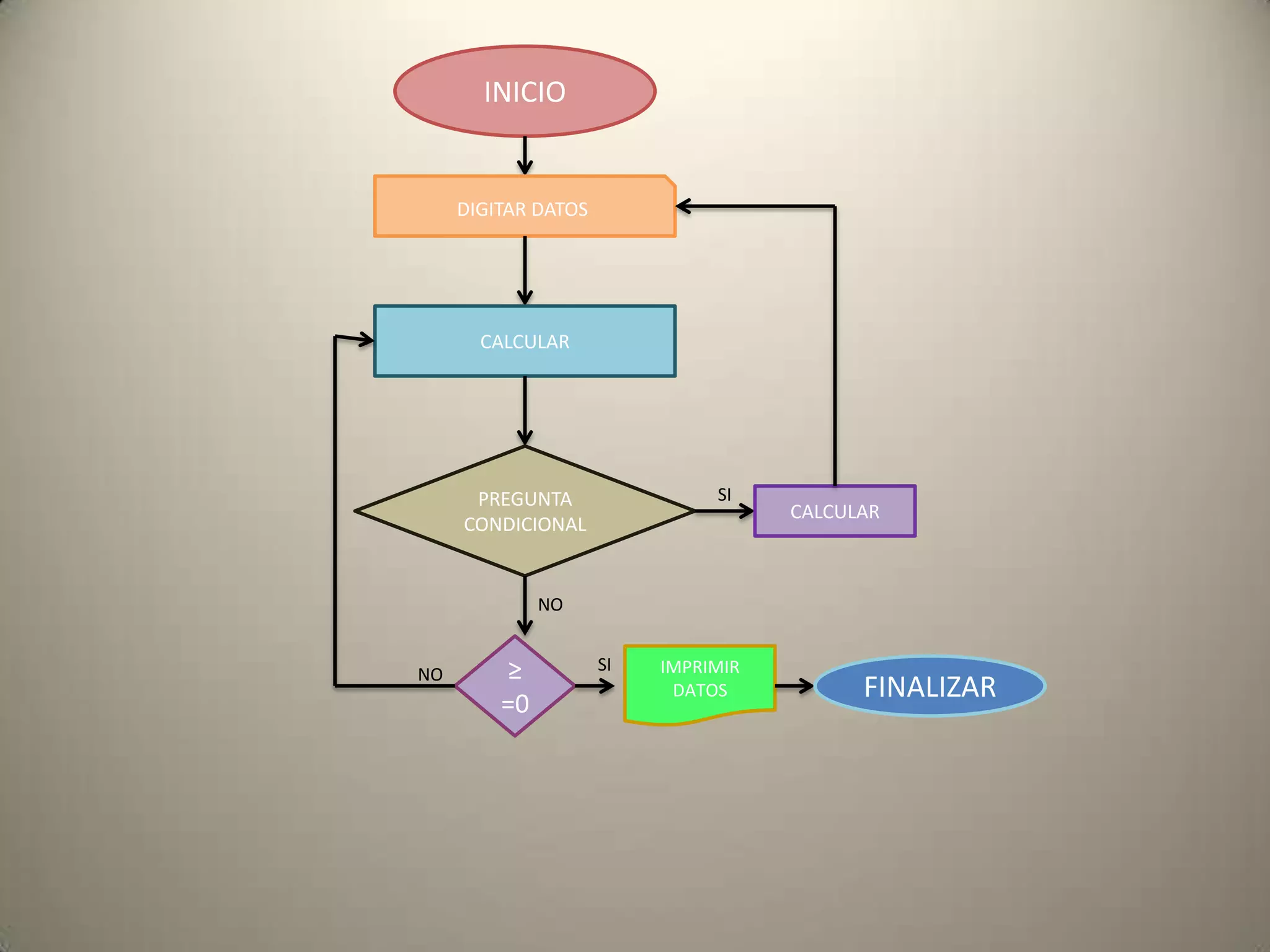 O documento descreve um algoritmo que coleta dados, realiza cálculos condicionais e imprime ou finaliza com base nos resultados. Ele coleta dados, calcula com base em uma condição, e se for verdade imprime ou finaliza dependendo de outro resultado.