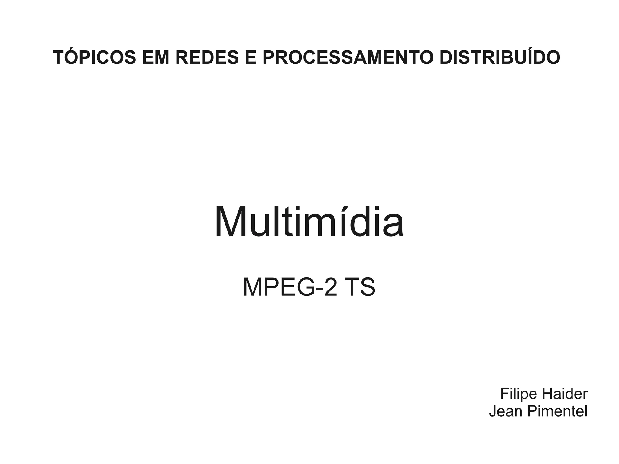 O documento discute o padrão MPEG-2 TS para transmissão de mídia, explicando como converter arquivos de vídeo para este formato usando a ferramenta ffmpeg e transmiti-los em tempo real com o VLC Media Player, permitindo que clientes recebam o fluxo via navegador web.