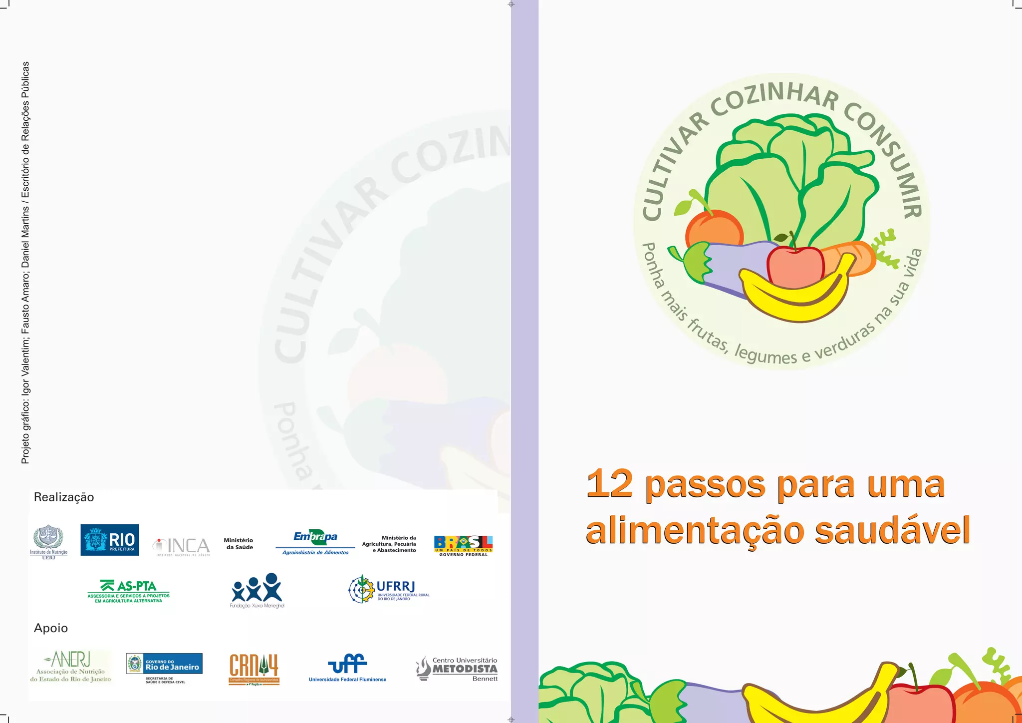 1. O documento fornece 12 passos para uma alimentação saudável, incluindo aumentar o consumo de frutas, legumes e verduras, beber pelo menos 2 litros de água por dia, comer devagar e apreciar as refeições, e manter o peso dentro de limites saudáveis.