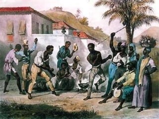 Este documento apresenta uma breve introdução sobre a história e cultura de nossos ancestrais, destacando as diferenças culturais e o trabalho de arte "Deusa do Ébano" criado pela professora Maria Clara Magalhães para o grupo formado por Flávia, Camila, Lorrana, F. Soraya e Ketllen da turma CN 1001.