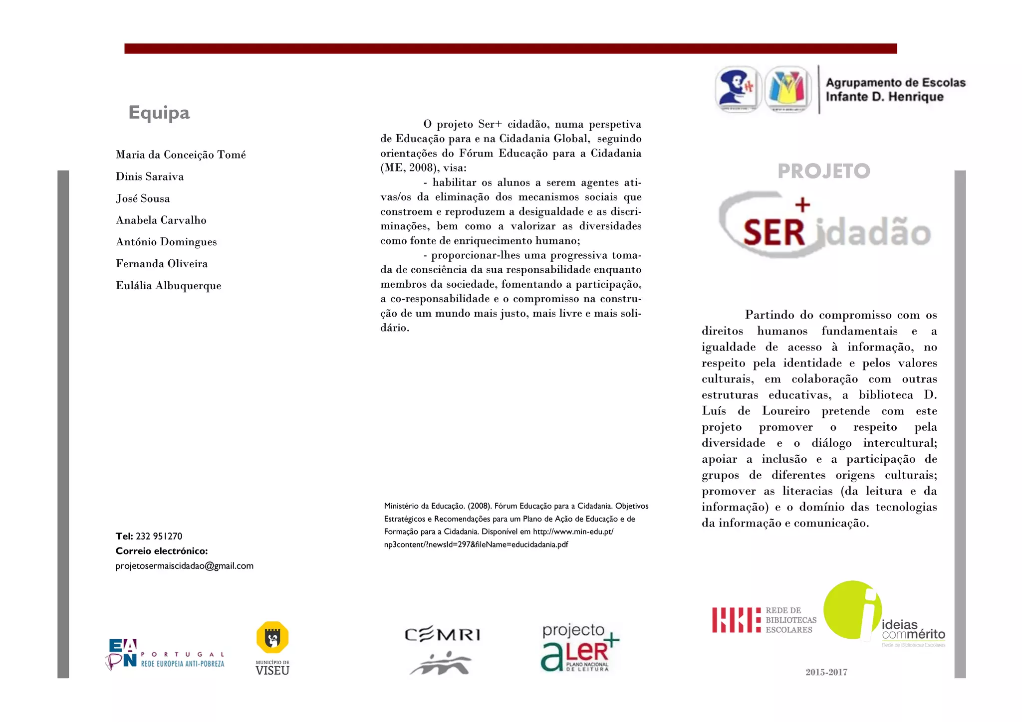 Este documento descreve um projeto de uma biblioteca escolar para promover a educação para a cidadania global entre os estudantes. O projeto visa desenvolver competências de leitura, escrita e literacia digital, bem como promover o diálogo intercultural e a integração de comunidades ciganas. Ele se baseia em recomendações do Ministério da Educação português para educação para a cidadania.