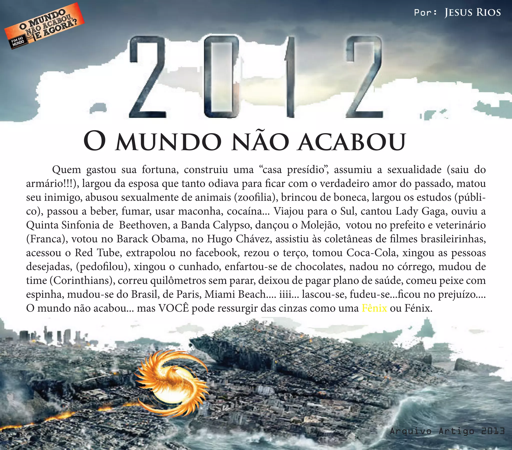 O mundo não acabou... mas VOCÊ pode ressurgir das cinzas como uma Fênix ou Fénix.