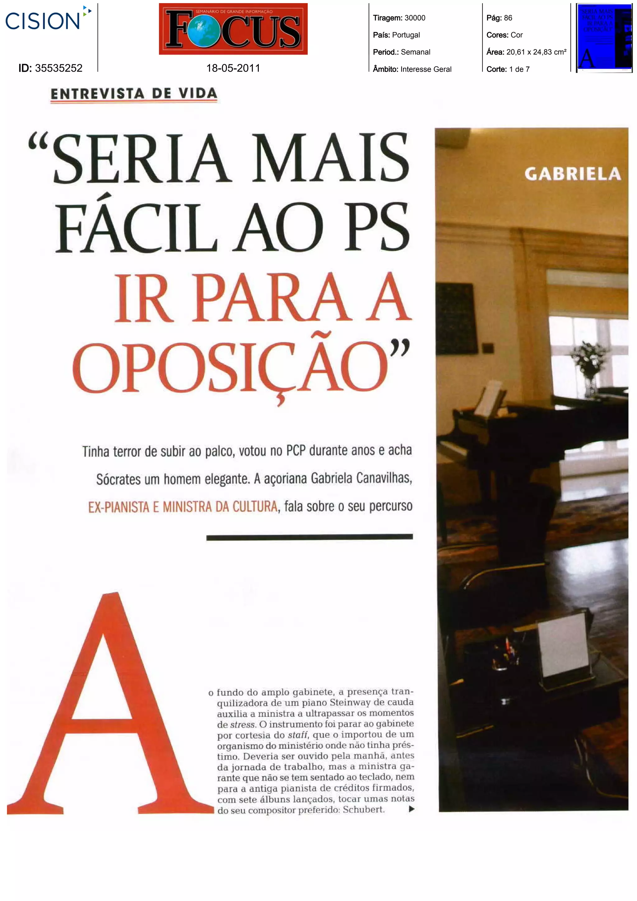 O documento fornece informações técnicas sobre 7 páginas de um periódico português semanal de interesse geral, incluindo tiragem, país, cores, período e dimensões de cada página.