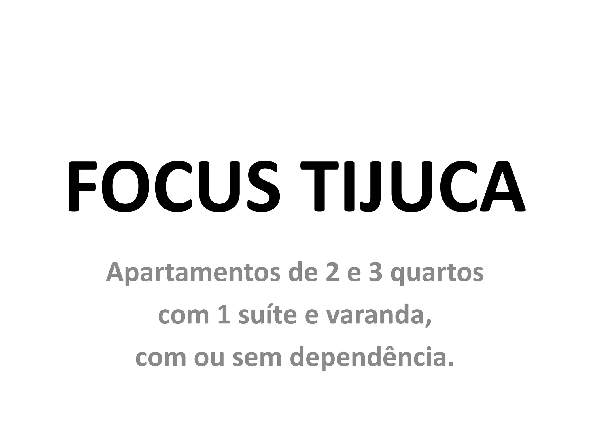 O anúncio descreve apartamentos de 2 e 3 quartos localizados no bairro da Tijuca, no Rio de Janeiro, com 1 suíte, varanda e opção de dependência.