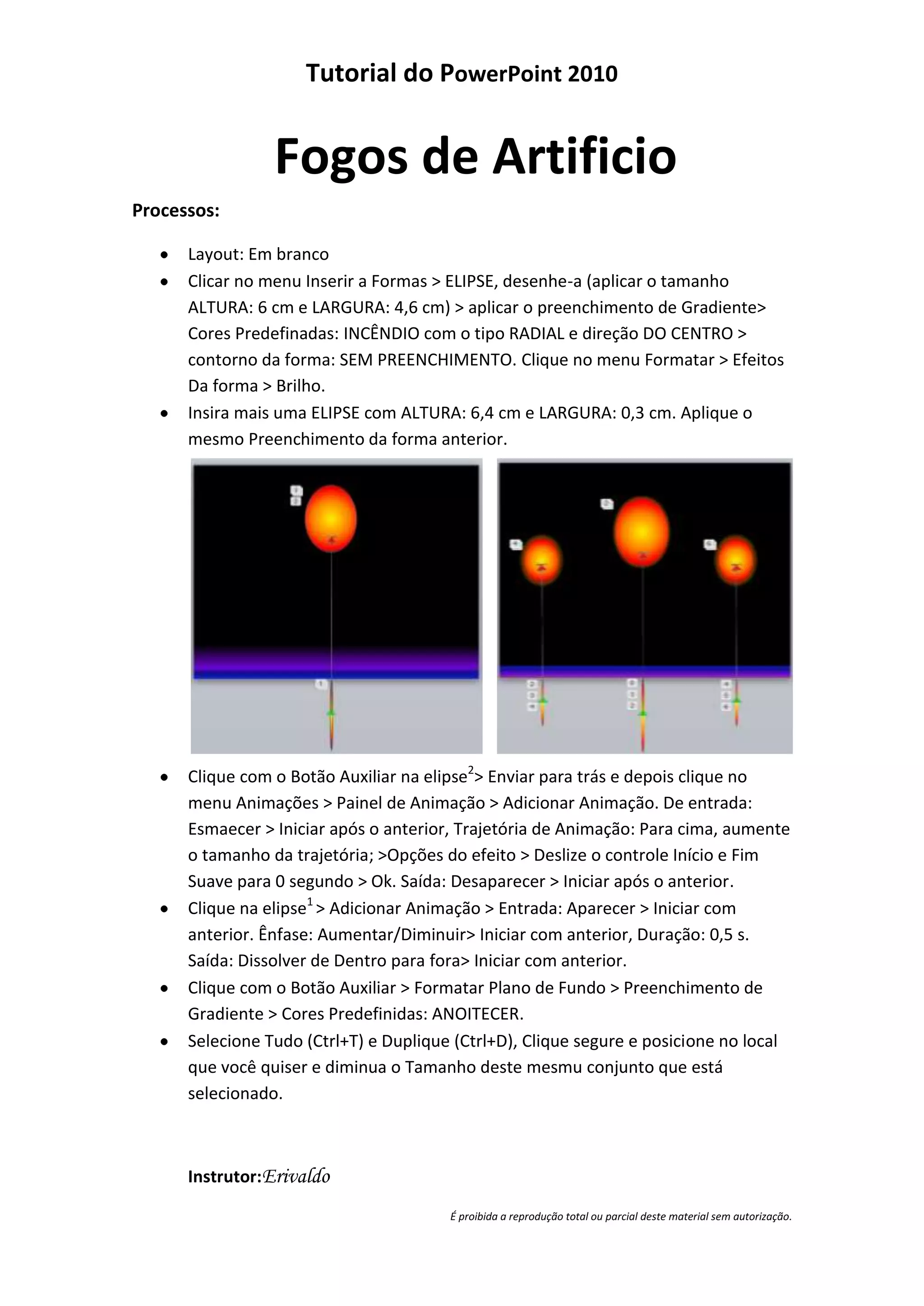 O documento fornece instruções para criar um efeito de fogos de artifício no PowerPoint em 3 frases ou menos:
