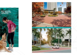O documento resume um projeto imobiliário de alto padrão localizado em Fortaleza, Ceará. O projeto consiste na construção de residências, salas comerciais e um hotel em um grande terreno próximo a bairros tradicionais da cidade. O empreendimento contará com diversas áreas de lazer e estará integrado a um shopping center.