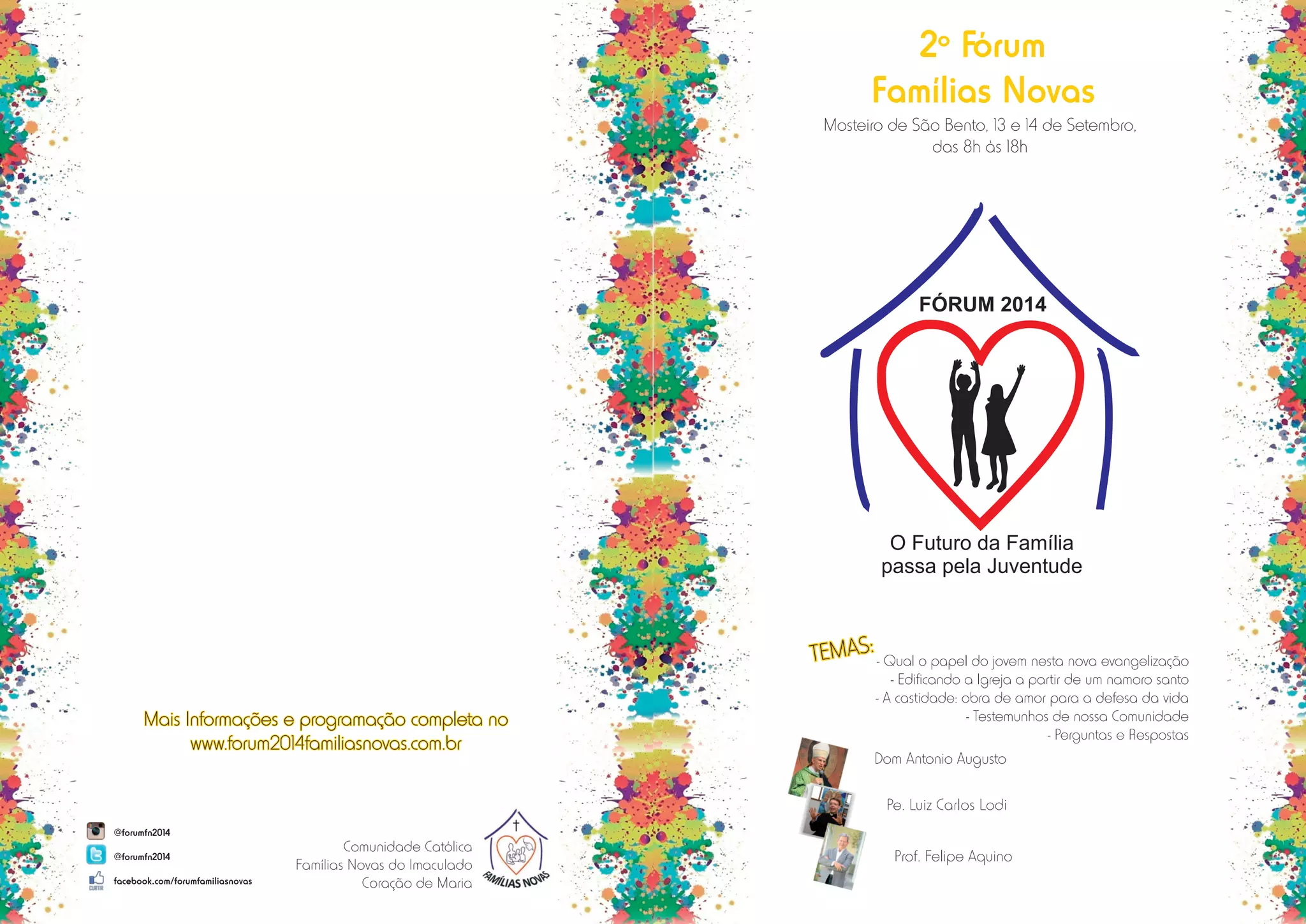O 2º Fórum Famílias Novas ocorreu em setembro de 2014, abordando temas como o papel da juventude na nova evangelização e a importância da castidade e do namoro santo na formação de famílias fortes. Discute-se a necessidade de restaurar valores familiares e a relevância da família na sociedade moderna, reiterando que a verdadeira felicidade e santificação se encontram nas relações familiares e na comunidade da Igreja. A mensagem central enfatiza que a juventude é fundamental para a construção de um futuro mais justo e espiritual, promovendo uma sociedade enraizada em Cristo.
