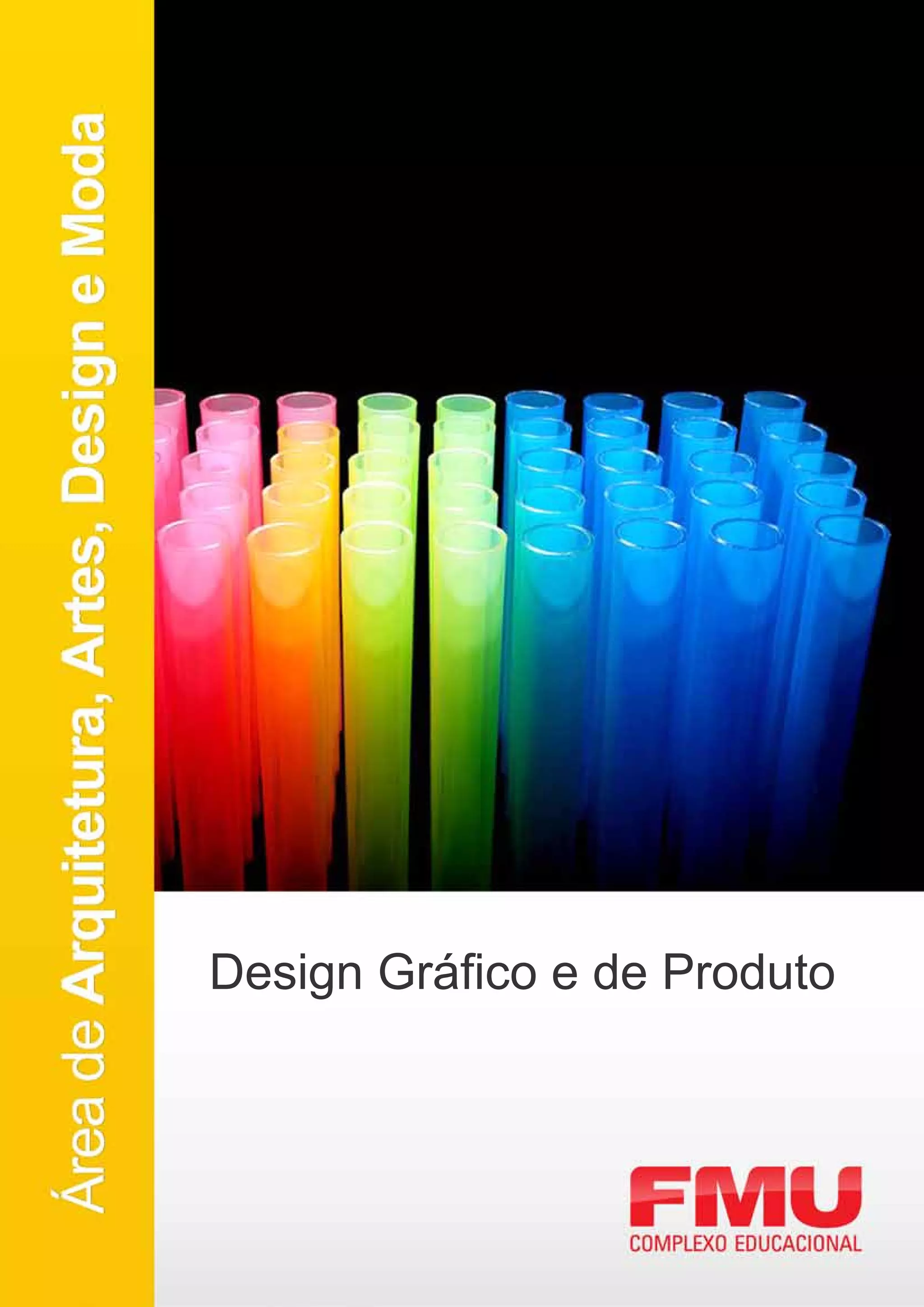 O documento descreve um curso de graduação em Design Gráfico e de Produto. Ele destaca que o curso forma profissionais qualificados com boas chances no mercado de trabalho, ensinando conceitos como identidade visual, comunicação digital, e produção gráfica. O programa estimula o desenvolvimento de habilidades práticas por meio de estágios supervisionados.