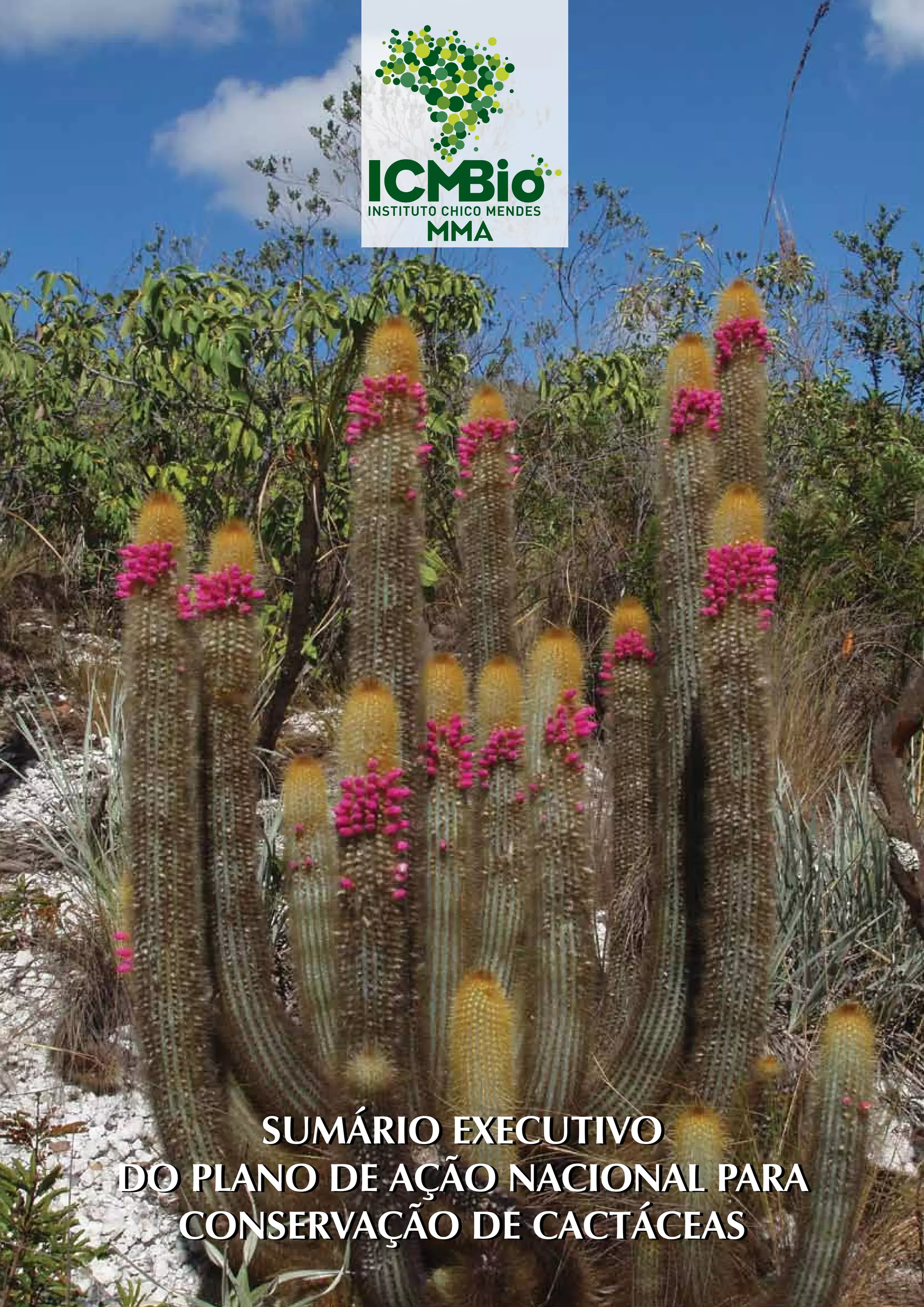 O documento apresenta um plano de ação nacional para a conservação de cactáceas no Brasil. O plano abrange 15 estados brasileiros e contempla 28 táxons de cactáceas ameaçados de extinção. As principais ameaças a essas espécies são a destruição e fragmentação de habitat devido ao desmatamento, agricultura e urbanização, além da coleta ilegal.
