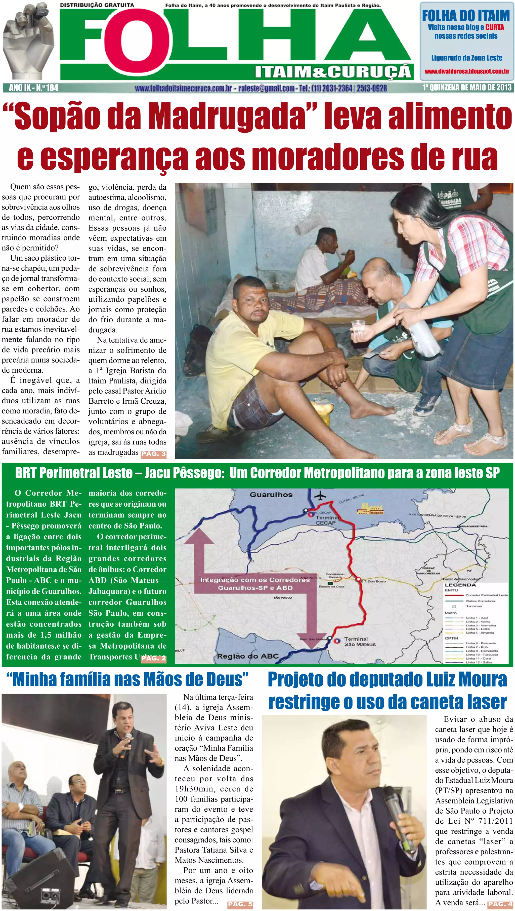 O artigo descreve o projeto social "Sopão da Madrugada" da Igreja Batista do Itaim Paulista, que distribui sopas todas as noites para moradores de rua. O projeto existe há 15 anos graças ao trabalho voluntário de membros da igreja e já ajudou muitas pessoas a transformarem suas vidas.