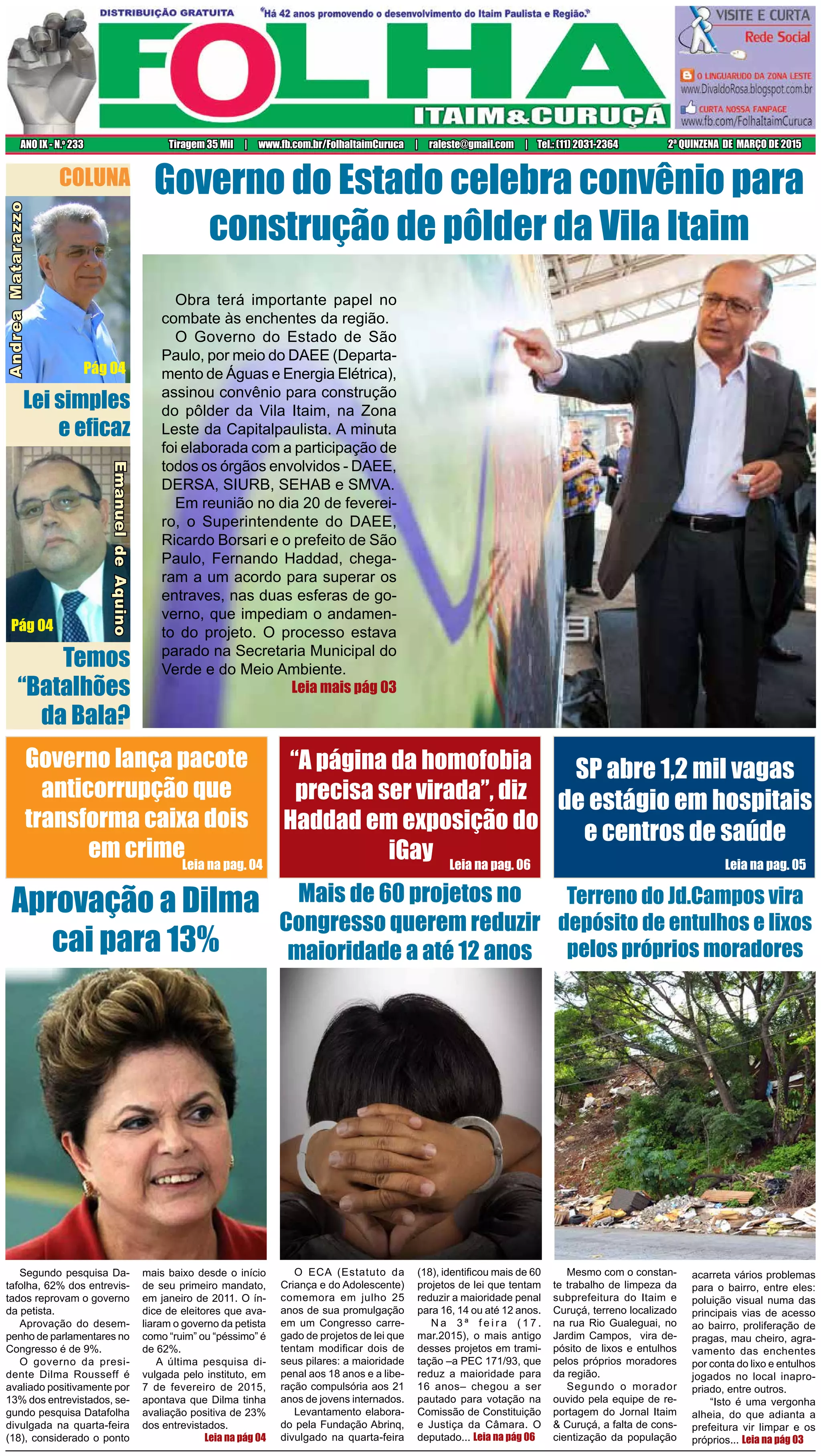 2) Aprovação do governo Dilma cai para 13% segundo pesquisa Datafolha.