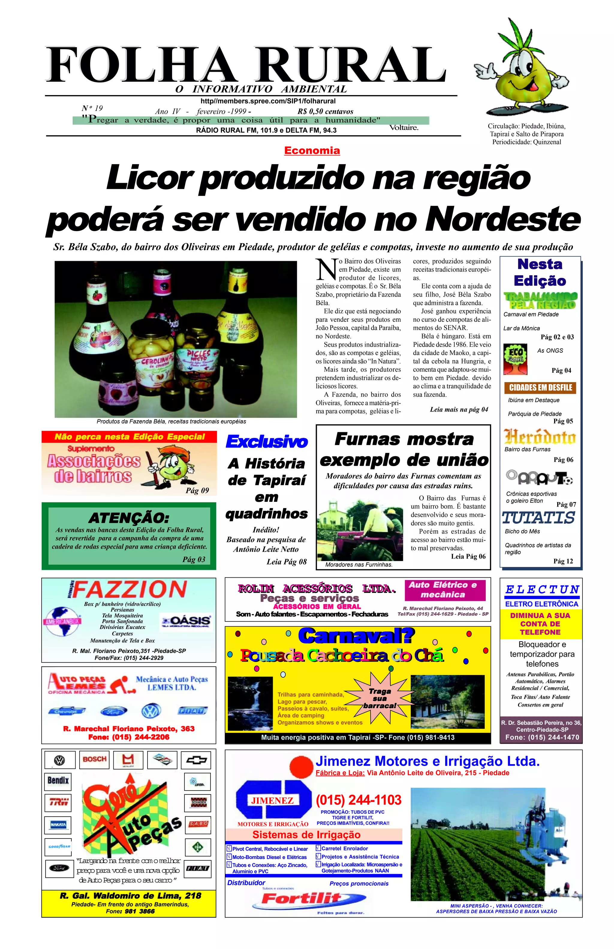 O documento apresenta três principais informações: 1) Um produtor de licores, geléias e compotas da região planeja vender seus produtos no Nordeste brasileiro, especialmente na cidade de João Pessoa, capital da Paraíba; 2) O Lar da Mônica, instituição que cuida de crianças carentes, precisa de novos sócios para continuar seu trabalho; 3) Moradores do bairro das Furnas em Piedade comentam sobre as dificuldades enfrentadas por causa das estradas em mau estado que dão acesso ao b