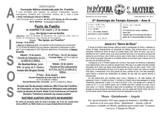 2) Também lista vários eventos da paróquia durante a semana da família, incluindo uma missa especial no domingo 16 de janeiro.
