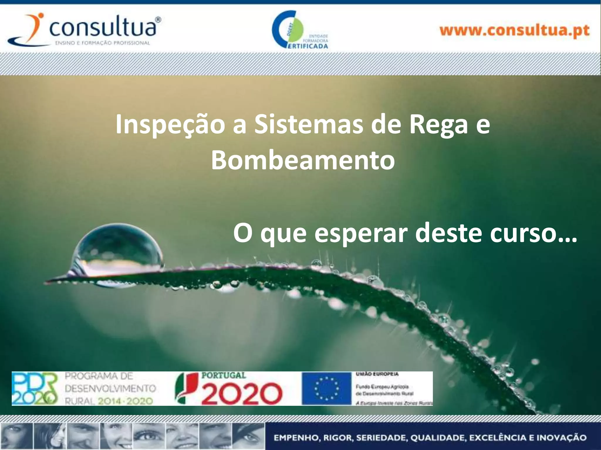 Este curso ensina sobre inspecionar sistemas de rega e bombeamento, cobrindo tópicos como hidráulica, métodos de rega, projeto de sistemas, bombeamento, normas de inspeção e técnicas de medição. O curso é composto por módulos teóricos e práticos, incluindo casos reais, e avaliação formativa e sumativa.