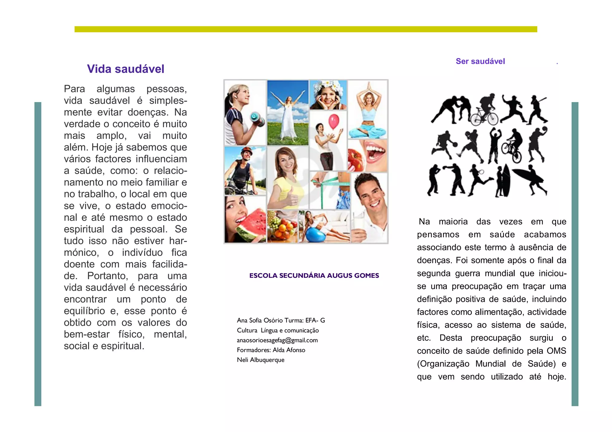 O documento discute o conceito de vida saudável de forma abrangente. A saúde não é apenas a ausência de doenças, mas o equilíbrio entre o bem-estar físico, mental, social e espiritual de uma pessoa. Vários fatores como relacionamentos, local de moradia e estado emocional influenciam a saúde. Portanto, para ter uma vida saudável é necessário encontrar um ponto de equilíbrio entre esses fatores.