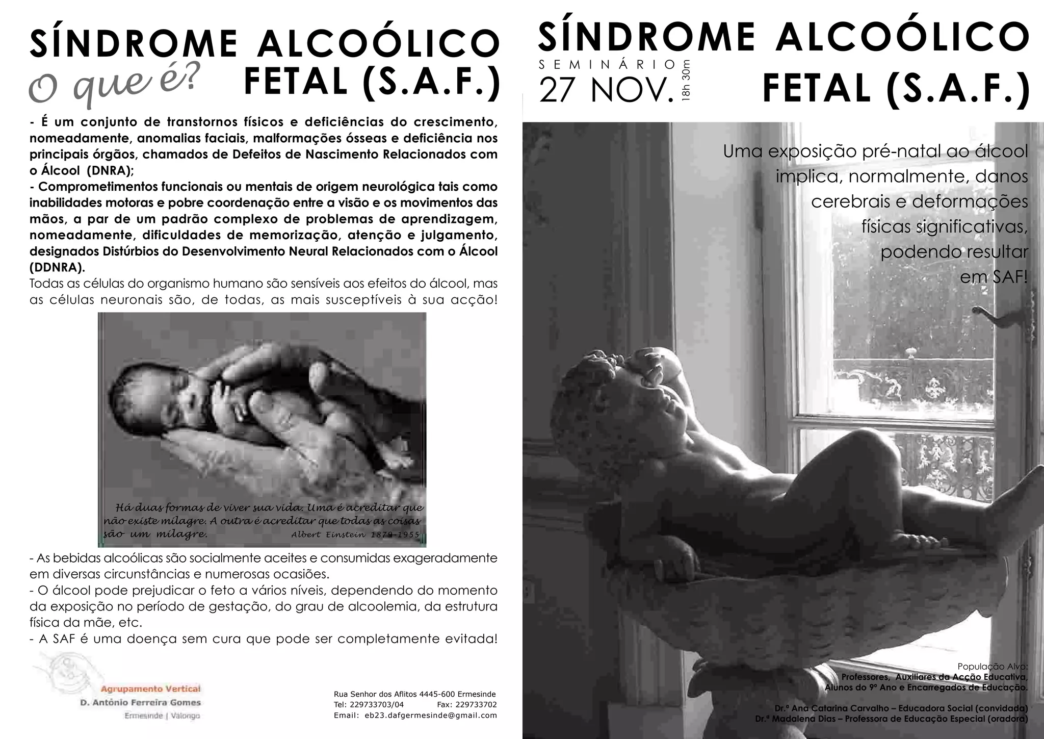 O documento discute a Síndrome Alcoólica Fetal (SAF), uma condição causada pela exposição pré-natal ao álcool que pode resultar em danos cerebrais, deformações físicas e distúrbios do desenvolvimento. O álcool pode prejudicar o feto a vários níveis dependendo do momento da exposição e quantidade consumida pela mãe. A SAF não tem cura, mas pode ser evitada se a mãe não consumir álcool durante a gravidez.