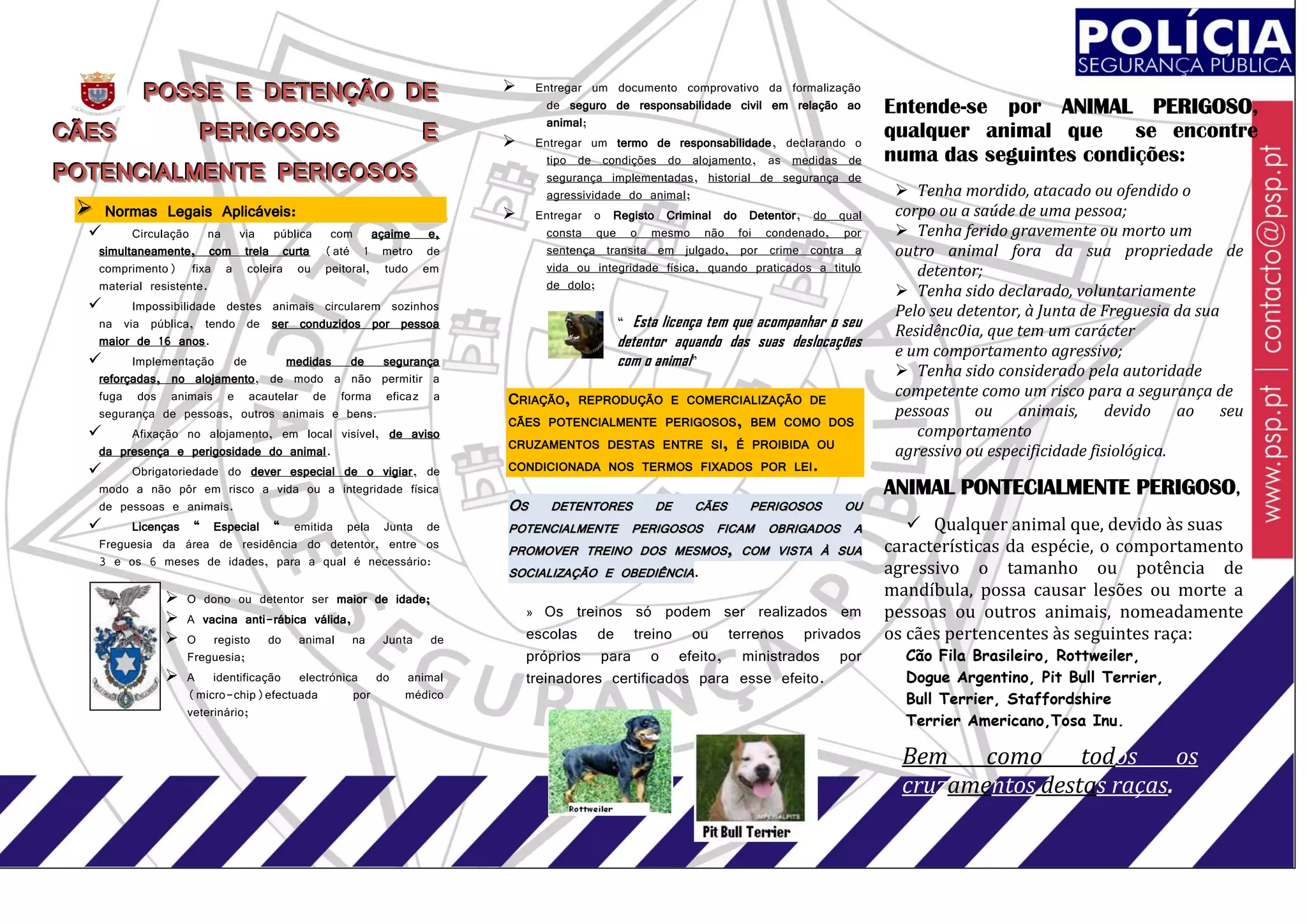 modo a não pôr em risco a vida ou a integridade física ANIMAL PONTECIALMENTE PERIGOSO,