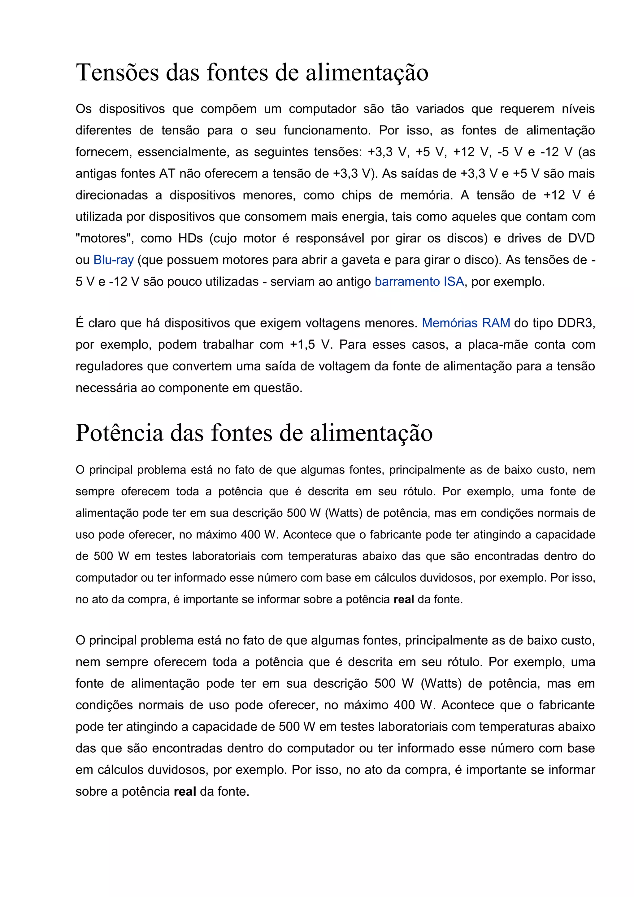 Existem diferentes tipos de nobreaks que fornecem energia de reserva para computadores em caso de falhas na rede elétrica, variando em custo, eficiência e nível de proteção. Os nobreaks online são os mais seguros mas também os mais caros, enquanto os line-boost oferecem um bom custo-benefício ao atenuar quedas de tensão usando transformadores antes de acionar as baterias.
