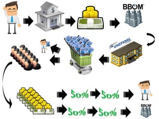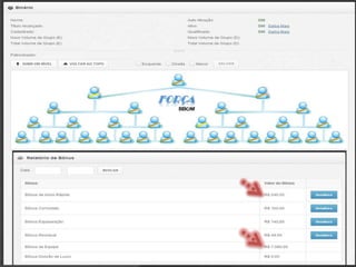 Este documento apresenta uma empresa de tecnologia chamada BBOM, que oferece rastreadores para veículos terrestres, aéreos e marítimos. A empresa possui diferentes planos de adesão para microfranqueados, que permitem ganhos mensais com bônus e indicação de novos clientes. Também são apresentados potenciais ganhos ao longo do tempo à medida que a rede de indicações se expande.