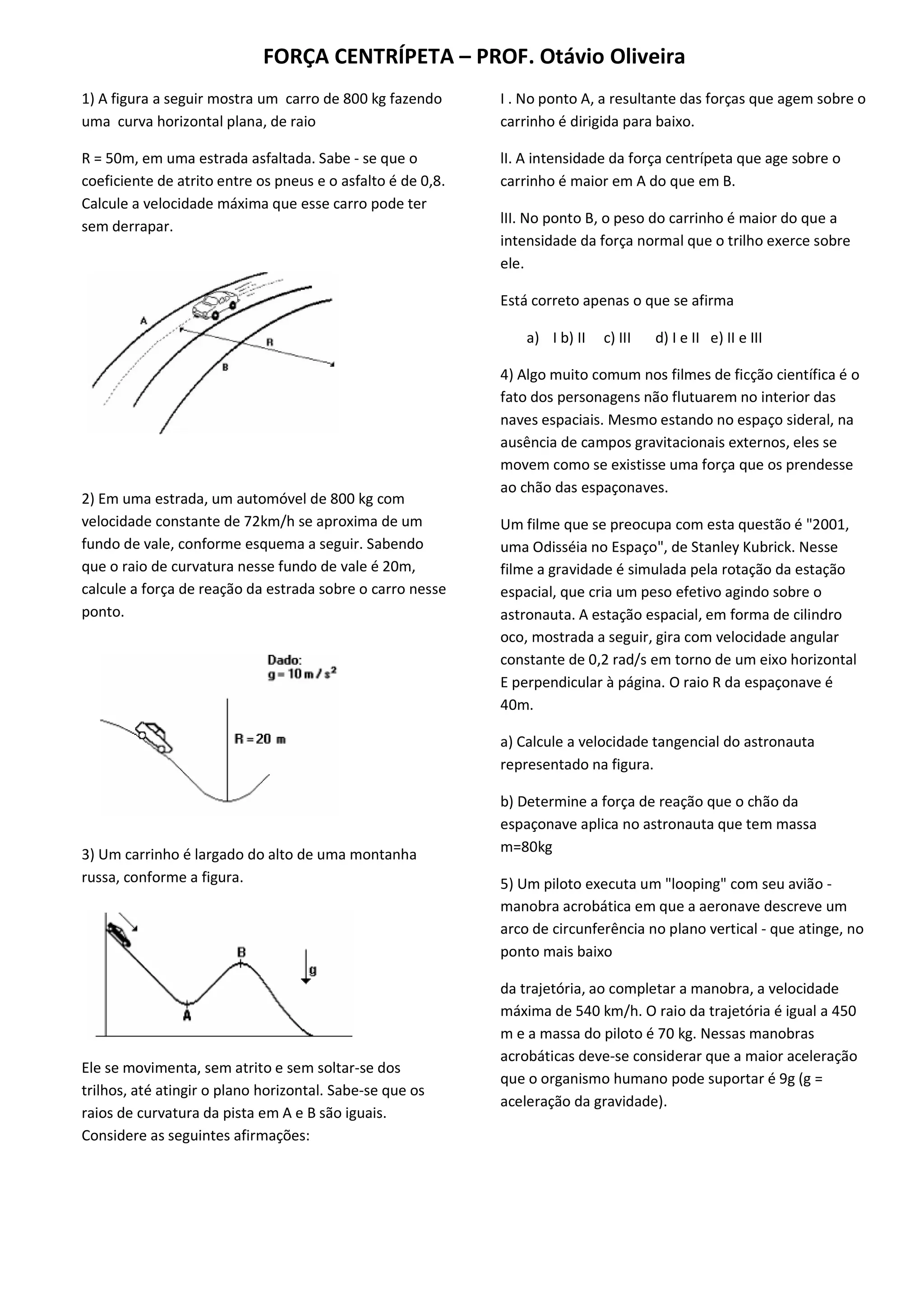 FORÇA CENTRÍPETA –PROF. Otávio Oliveira
