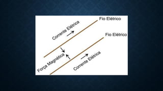 3) A força magnética entre fios paralelos depende da distância entre os fios, correntes elétricas e campo magnético, ger