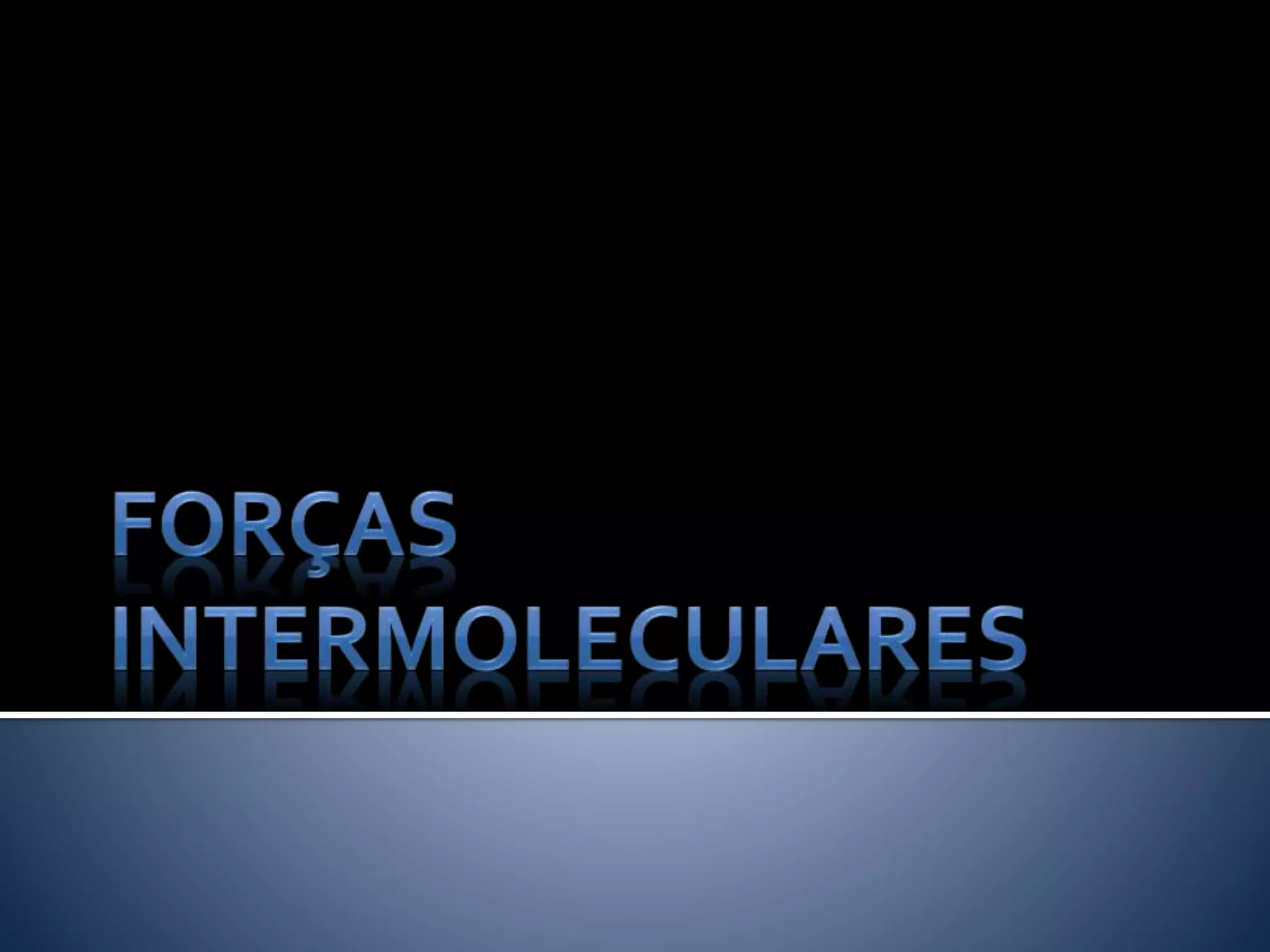 O documento descreve as principais forças intermoleculares: 1) força de dipolo permanente entre moléculas polares; 2) força de van der Waals em todas as substâncias; 3) pontes de hidrogênio entre moléculas polares com átomos de hidrogênio ligados a átomos pequenos e eletronegativos. Essas forças definem propriedades como ponto de fusão e ebulição.