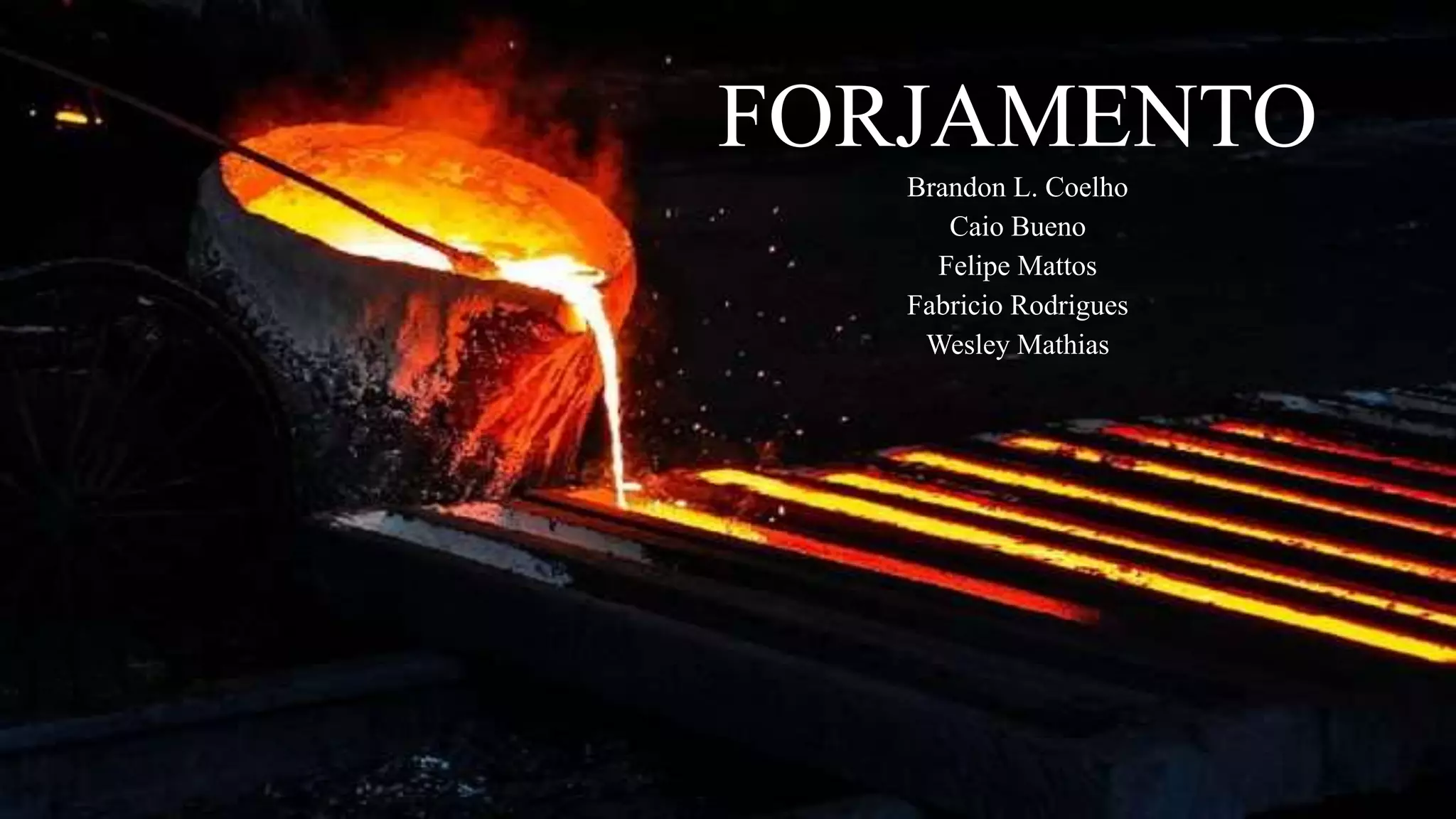 O forjamento é um processo de fabricação que molda metais através de compressão, com uma longa história que remonta a ferreiros antigos. Existem diversas técnicas de forjamento, como a frio e a quente, além de várias máquinas, incluindo prensas e martelos, cada uma com características específicas. O processo pode enfrentar defeitos como trincas e descarbonetação, que afetam a qualidade das peças produzidas.