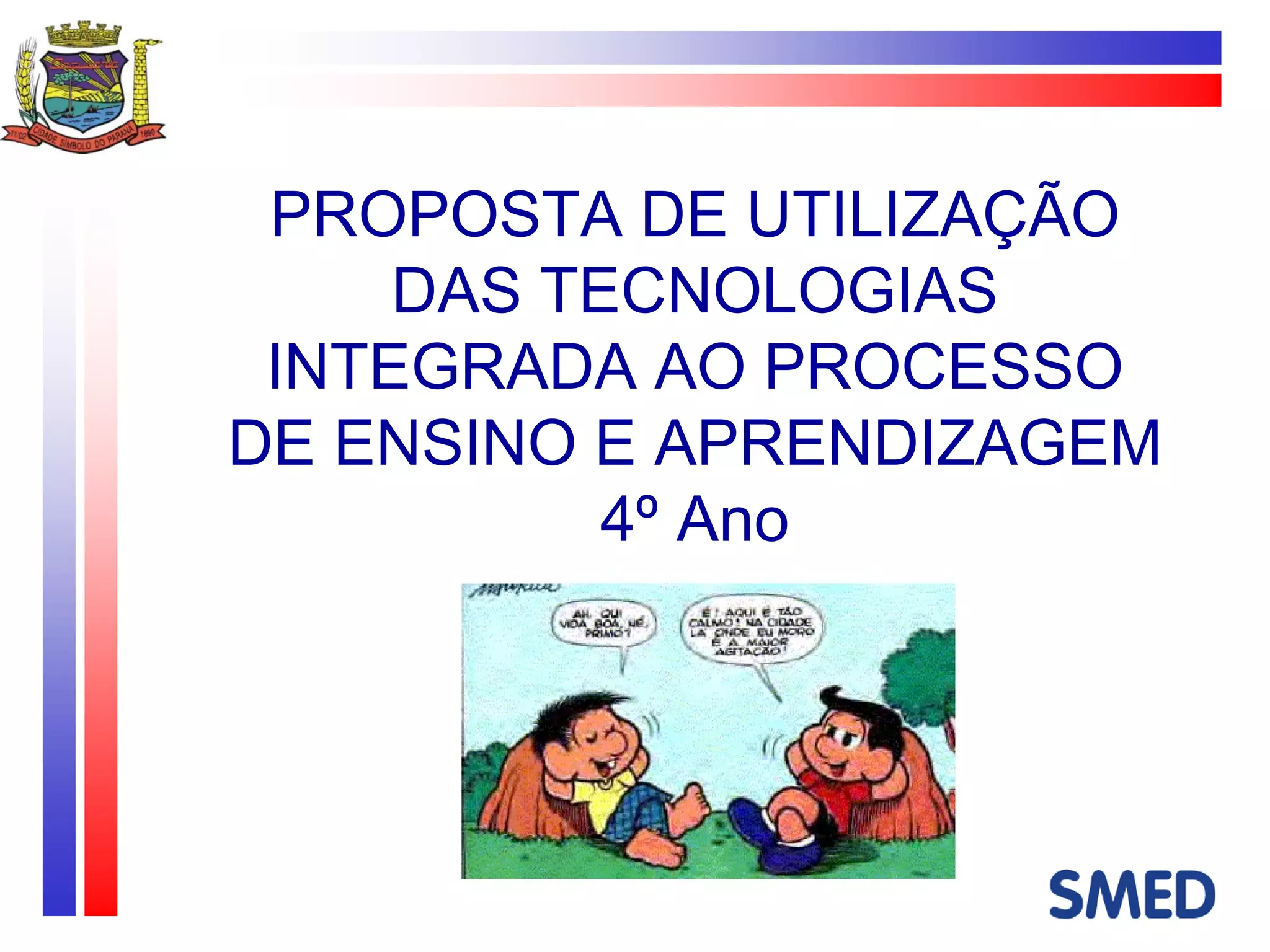 A proposta discute a utilização de tecnologias no ensino de conteúdos sobre espaço rural e urbano no 4o ano. As atividades incluem perguntar aos alunos sobre experiências em fazendas e cidades, identificar paisagens em vídeos sobre a cidade e o campo, e discutir se a região dos alunos é urbana ou rural.
