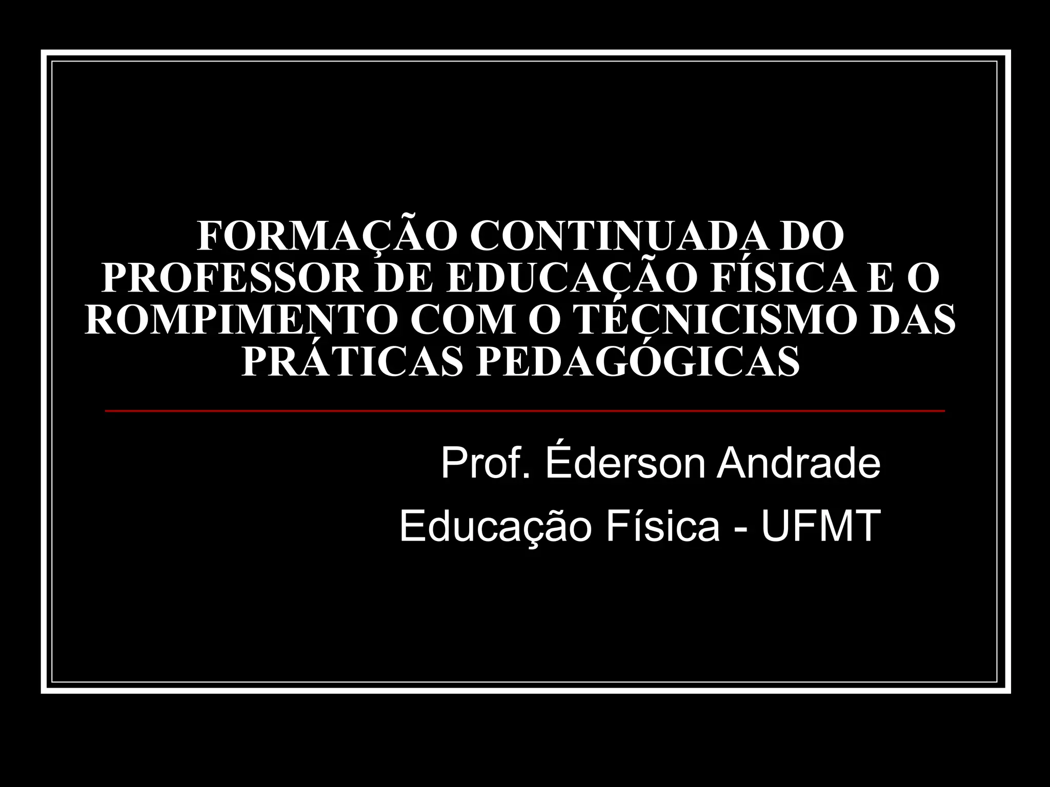 O documento discute a formação continuada de professores de educação física e o rompimento com práticas pedagógicas tecnicistas. Ele propõe a criação de um Grupo de Estudos para analisar teorias críticas da educação física escolar e mudar o foco das aulas de práticas biológicas e fisiológicas para a cultura corporal. Após reflexões no grupo, as práticas dos professores romperam com o tecnicismo e passaram a ter uma abordagem mais crítica e emancipat