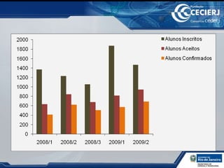 Este documento descreve o programa de formação continuada de professores on-line da Fundação CECIERJ no Brasil. O programa oferece cursos on-line em diversas disciplinas para professores de todo o estado do Rio de Janeiro utilizando a plataforma Moodle. O programa tem como objetivos construir ambientes colaborativos de aprendizagem online e comunidades virtuais de professores.