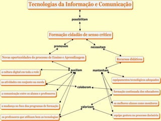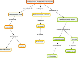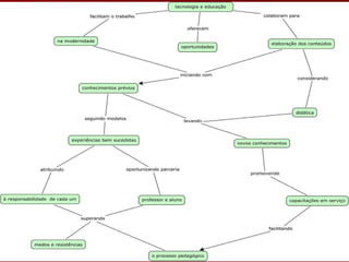O documento aborda a formação continuada dos alunos da turma 02 do período vespertino, com foco na análise dos mapas conceituais construídos. É solicitado que se avalie a clareza semântica de cada proposição presente nos mapas. Além disso, encoraja-se a sugestão de melhorias para aprimorar o conteúdo apresentado.
