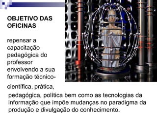 O documento discute a necessidade de transformar a formação docente diante da Era do Virtual, com novas tecnologias de informação. Argumenta-se que os professores precisam ser capacitados continuamente para acompanhar as mudanças, dominar conteúdos atualizados e orientar estudantes no uso crítico da informação disponível. Também são importantes as competências pedagógicas e didáticas dos professores para mediar a aprendizagem.
