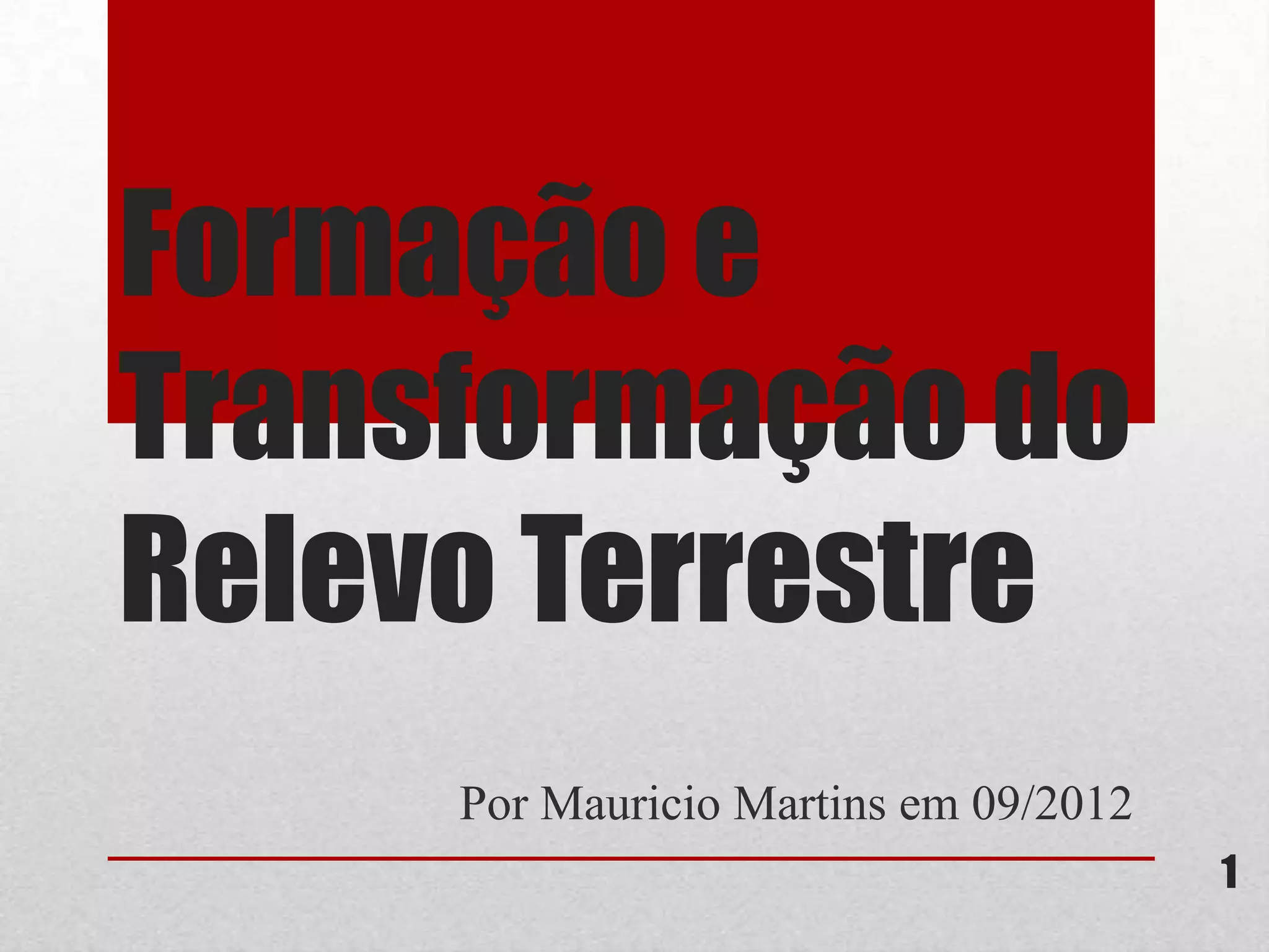 O documento aborda a formação e transformação do relevo terrestre, destacando a teoria da deriva continental de Alfred Wegener e o papel das placas tectônicas nesse processo. Também explora fenômenos relacionados, como terremotos, tsunamis e vulcanismo, além dos agentes externos que modelam o relevo, como o vento, a água e a ação humana. Por fim, discute as principais formas de relevo e suas mudanças ao longo do tempo.