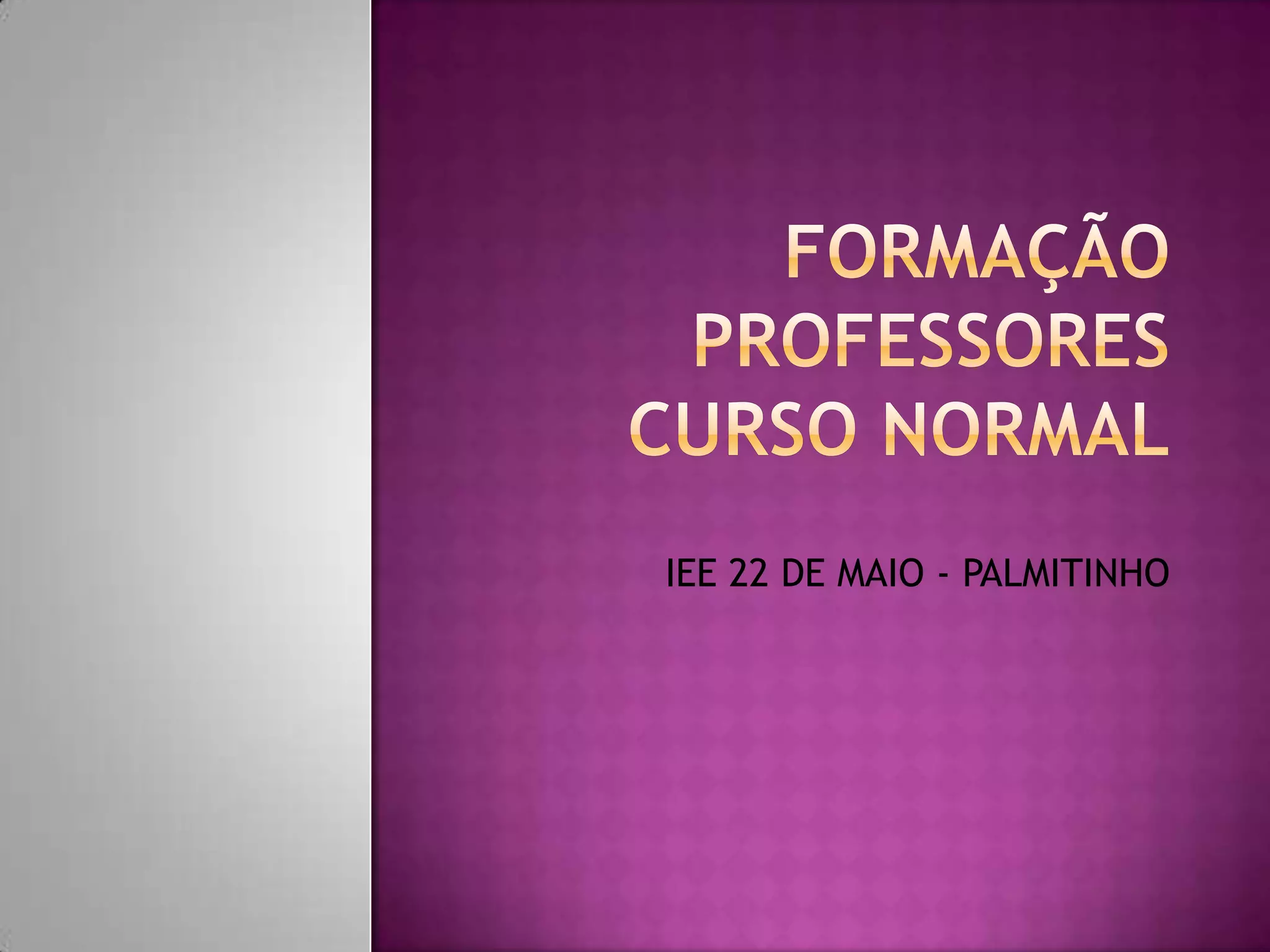 O documento discute eventos de formação para professores do Curso Normal do IEE 22 de Maio, incluindo oficinas, palestras e leituras sobre temas pedagógicos. Plano de atividades para os três anos letivos inclui monitoria, estágios e projetos interdisciplinares. Haverá também discussões sobre a ressignificação da formação docente no século 21.