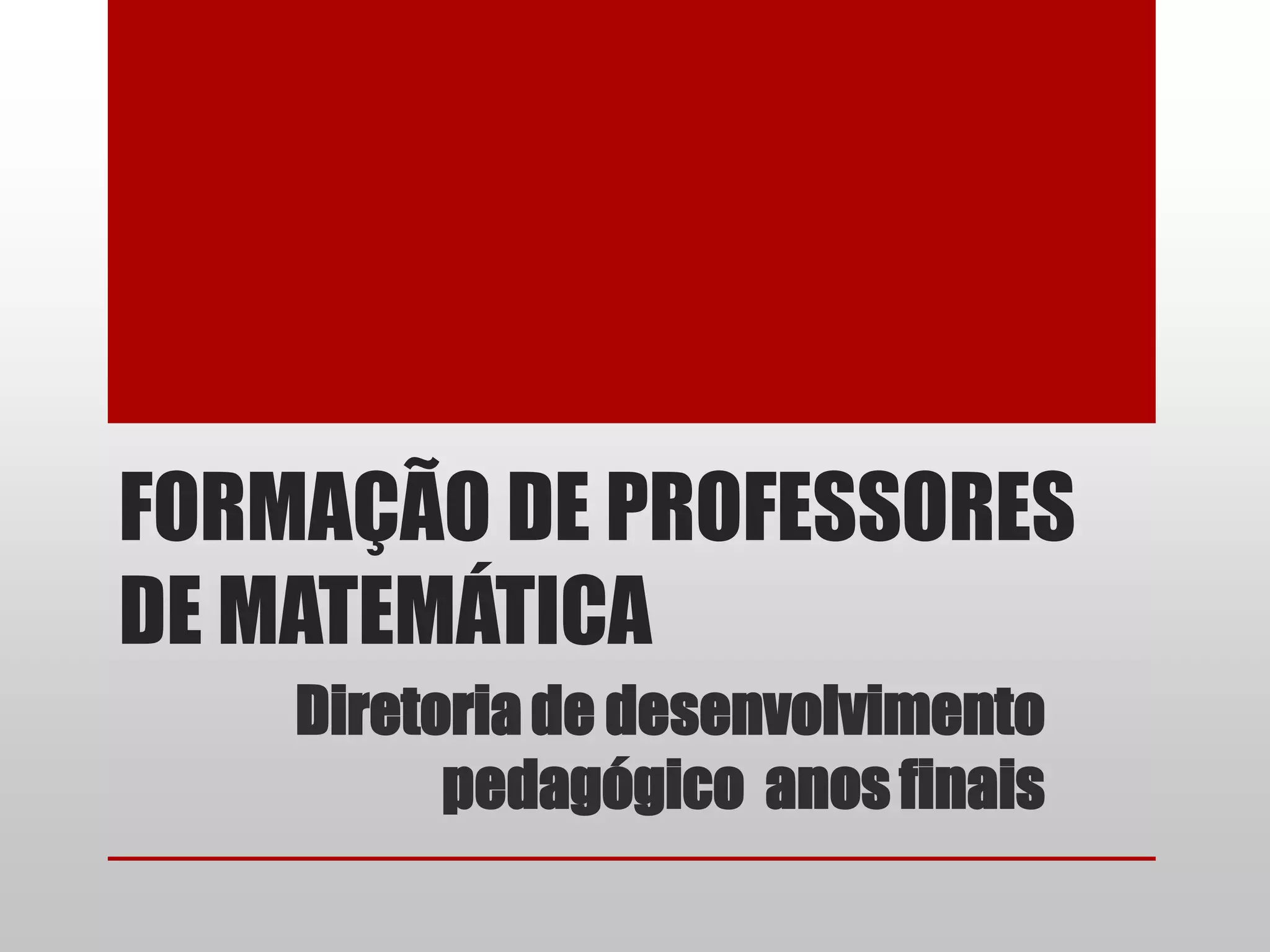 O documento apresenta um projeto de formação de professores de matemática com o objetivo de melhorar os resultados dos alunos nas avaliações externas. O projeto divide os professores em grupos por região para desenvolver atividades em sala de aula com foco nos conteúdos das matrizes de referência e apresentá-las periodicamente. Os professores receberão certificação se cumprirem os critérios de participação nas formações e apresentações.