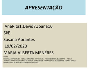 O documento discute as diferentes formas que os animais podem ter, incluindo formas irregulares, com cabeça, tronco e membros, segmentadas, simétricas bilateralmente ou radialmente, estreladas, esféricas, achatadas, cilíndricas, de aves, cônicas e do golfinho. Exemplos de cada forma são fornecidos, como a esponga marinha com forma irregular, o gato com cabeça, tronco e membros, e a minhoca com corpo segmentado.